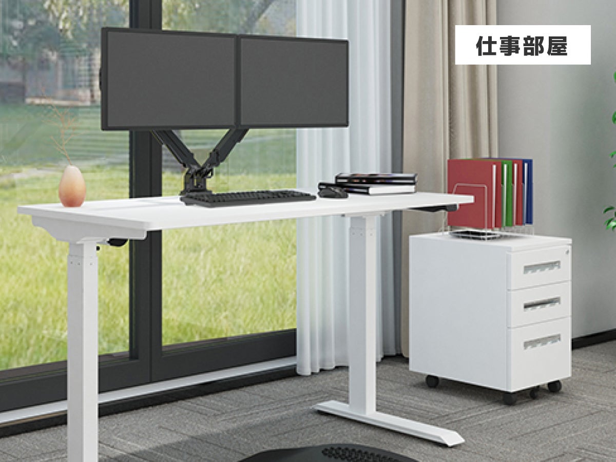 ・ボタン一つで、デスクの高さを調整いただけます。・障害物があっても、センサーで自動ストップします。・メモリー機能であなたの高さを4件まで登録できます。 ご家族の方の分も登録可能ですね。