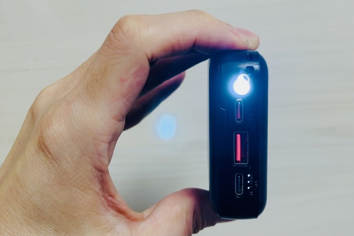 さて、この超多機能モバイルバッテリーにはLEDライトが付いています!
