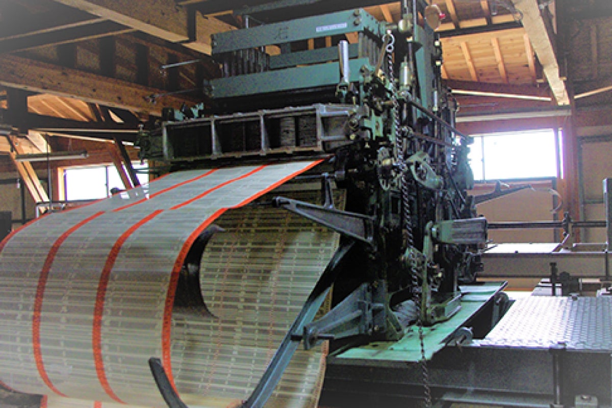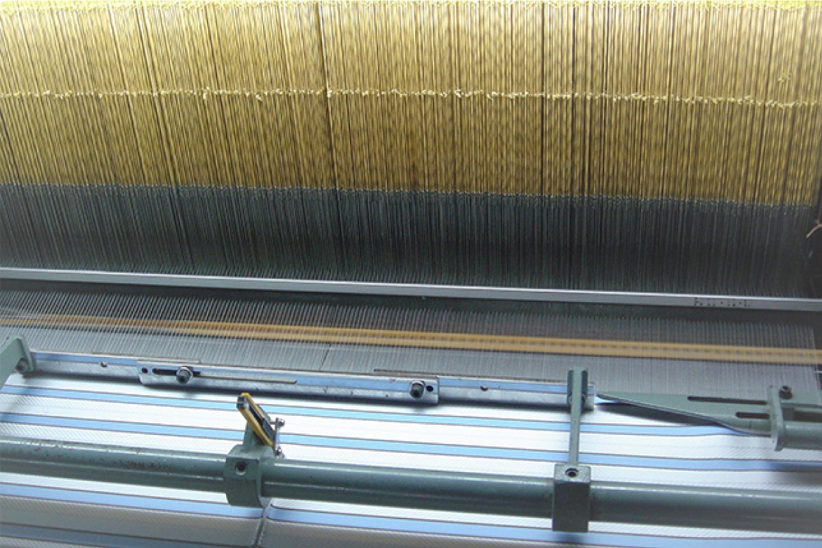 たて糸本数密度が1cm間に104本の高密度ジャガード織機による細部までこだわった織物で京丹後の専用織機により難度の高い織物を製造されています。