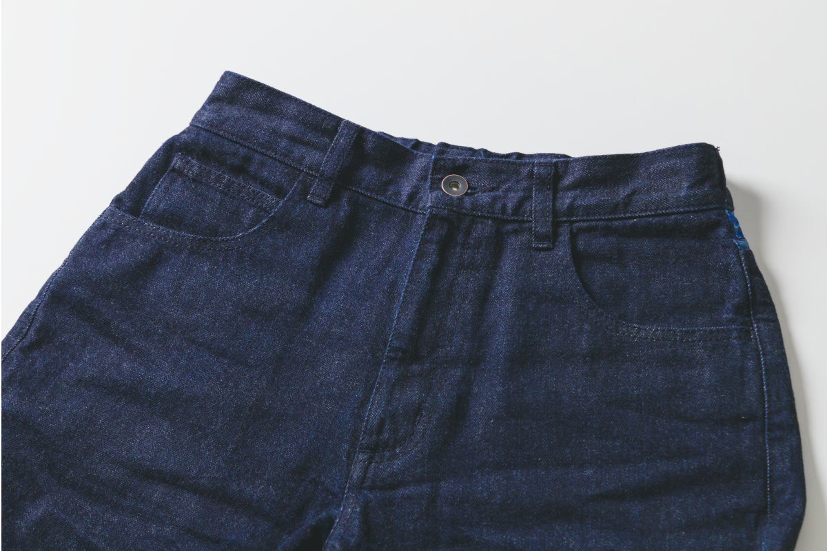 あらかじめ軽めの洗いをかけている「ワンウォッシュデニム」。生のデニム(リジッドデニム)を一度洗っているので、柔らかく履きやすくなってます。