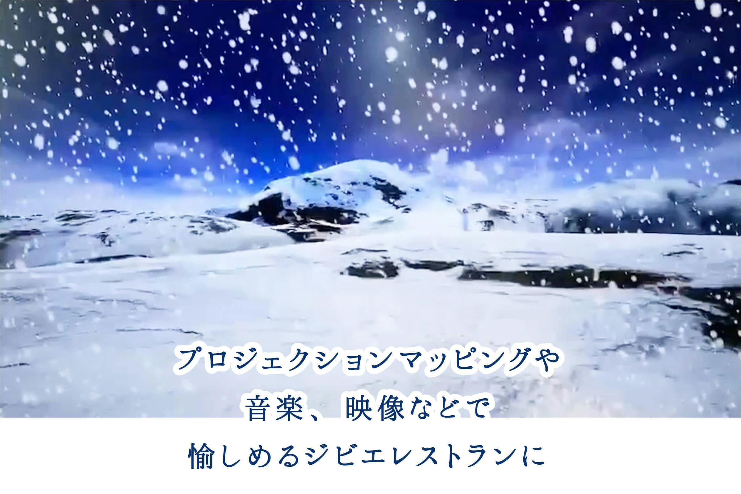 ジビエ料理と一緒に、プロジェクションマッピングや音楽、映像などでアイヌ文化を体感し