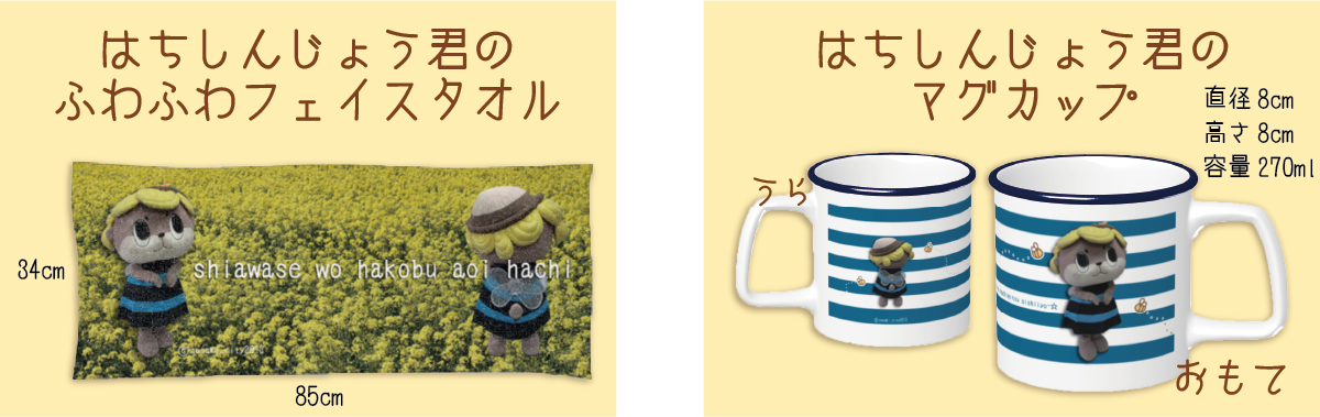 幸せを運ぶと言われている青いミツバチに扮したしんじょう君の、ここでしか手に入らないグッズを作らせていただきましたので、ぜひこちらのコースもチェックしてみてください!
