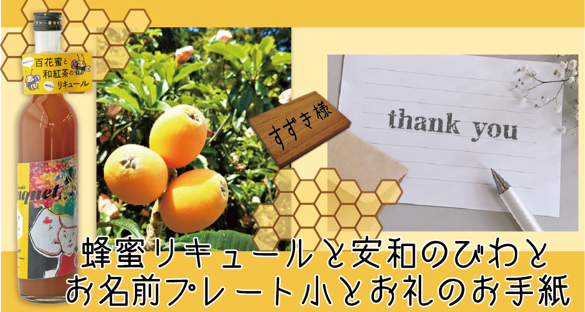 ・10,000円コース⑤ 蜂蜜リキュール1本+お名前プレート(小)+安和のびわ+お礼のお手紙 ※収穫の都合上5月のお届予定となります。
