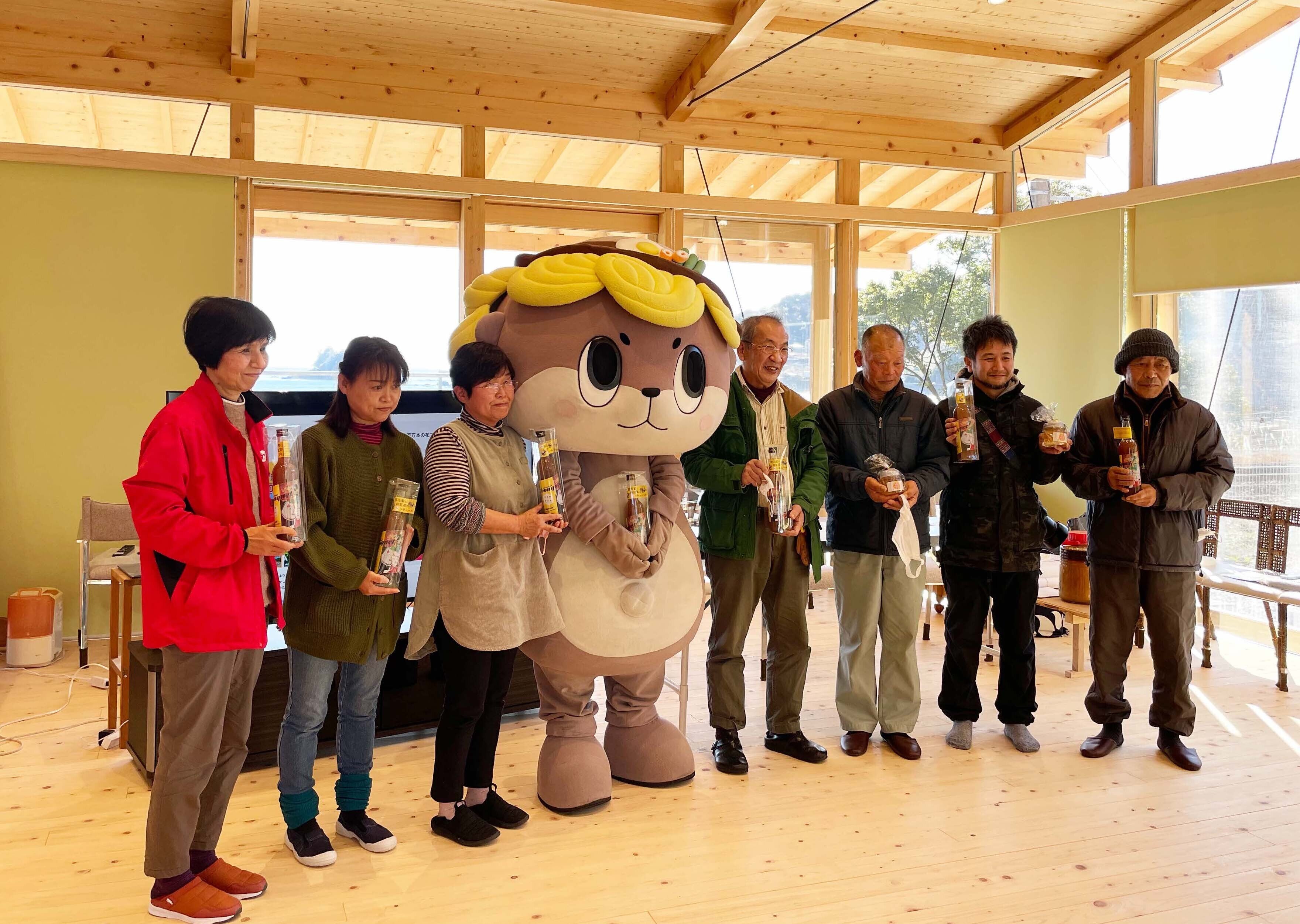 プロジェクト開始時、須崎市のマスコットキャラクターしんじょう君にもお越しいただき、集落活動センターあわにて記者会見を行いました。