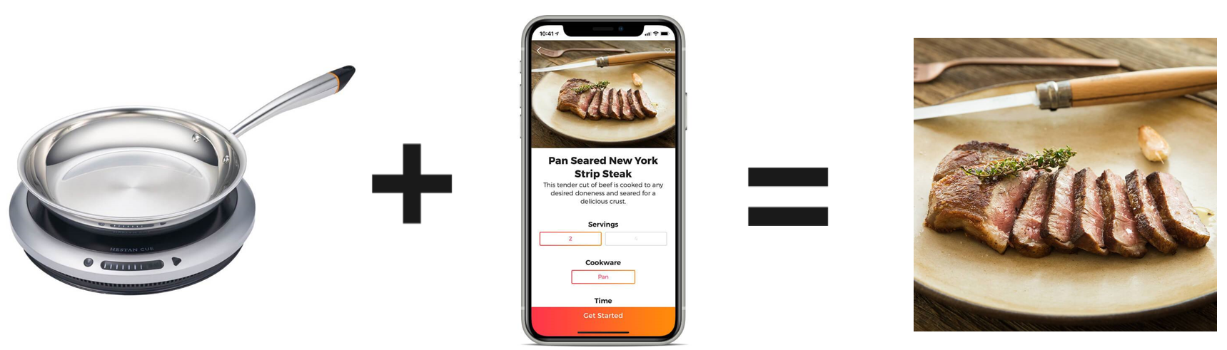 専用アプリ内のレシピはフライパンを使用するものが多くなっておりますので、Hestan Cueを使用した調理の入門編として、フライパンのご購入をお勧めしています。※今後、アプリ内レシピの調理器具使用比率は変動いたします。