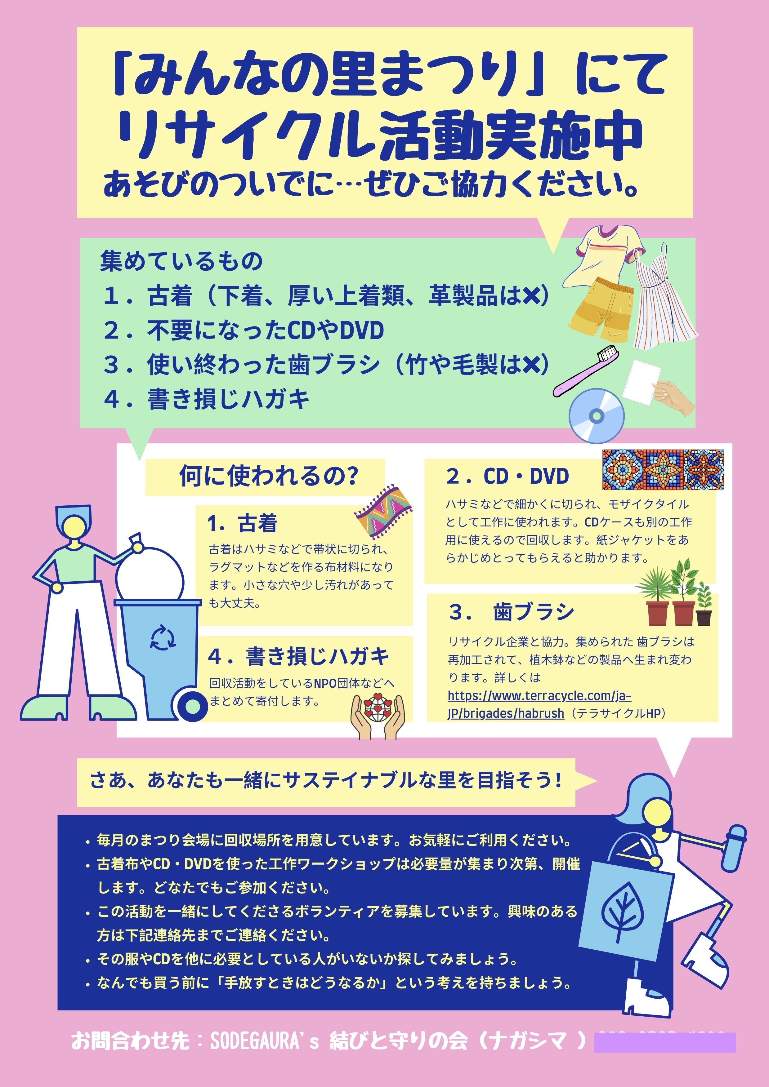 サステナブルな商品販売、古着などのリサイクル活動、SDGsを考える参加型ワークショップを実施しています。