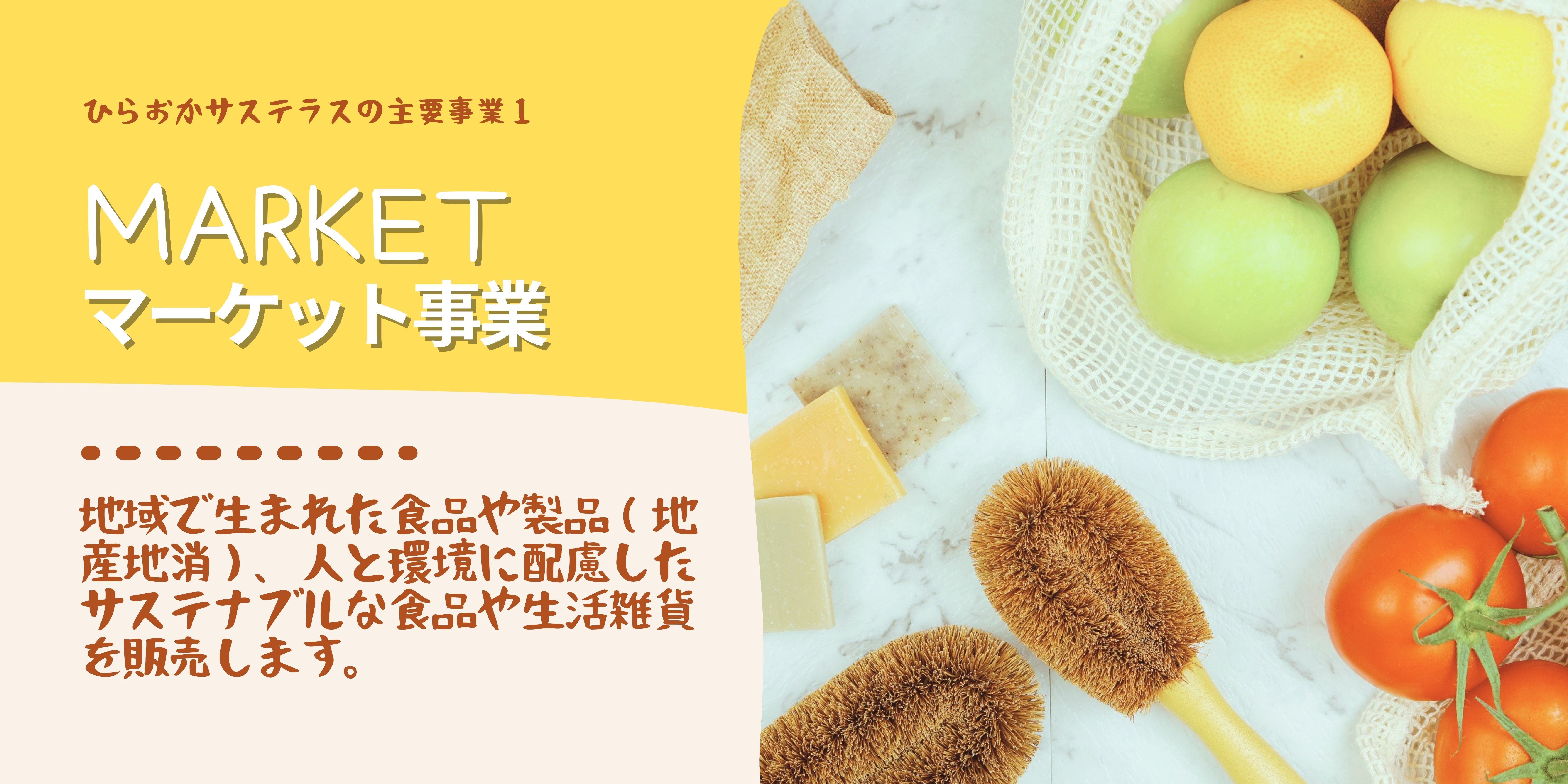 1つ目は、地元生産品・製造品やフェアトレードなどのエシカル商品を販売し、サステナブルな地域内経済循環を図るマーケット事業