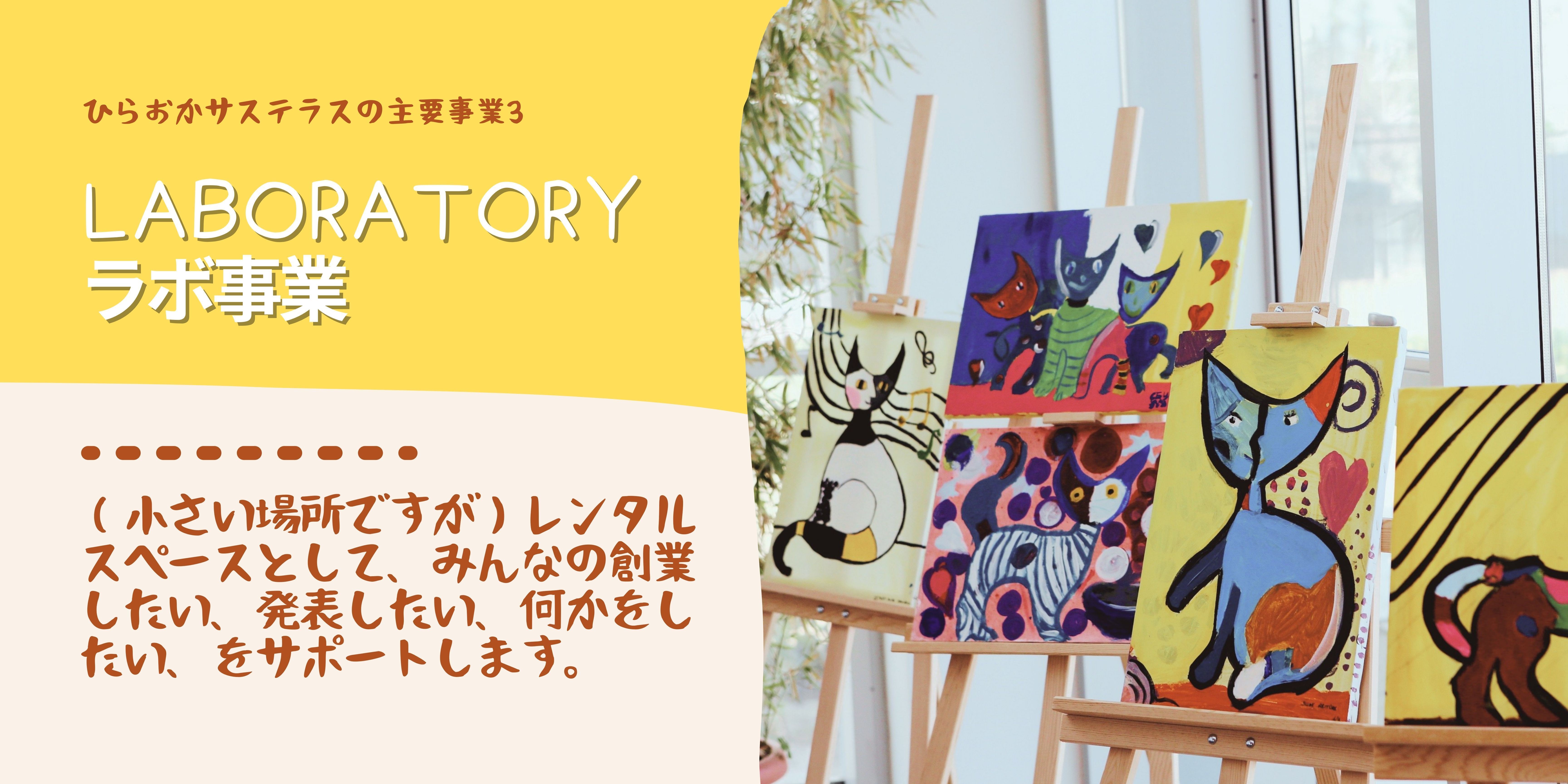 3つ目は、住民の創業や発表などのチャレンジを、会場レンタルやコーディネートでサポートするラボ事業です。