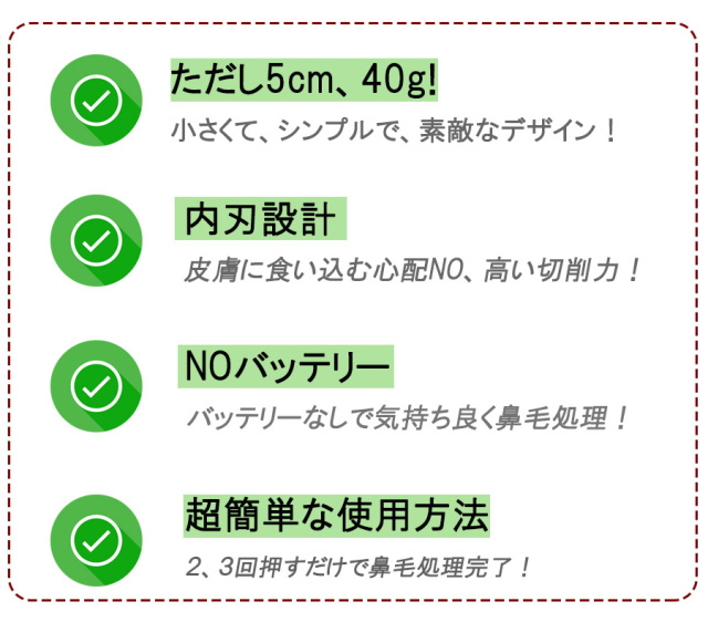 2. NOバッテリー | バッテリーなしで気持ち良く鼻毛処理!