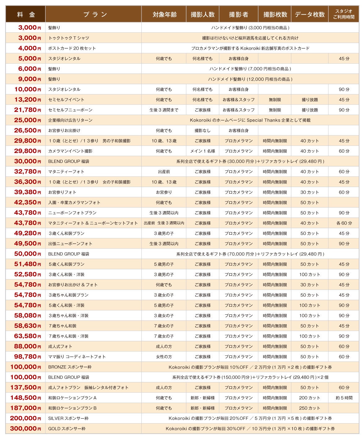 今回のリターンは新スタジオKokoroikiで撮影出来る様々な撮影プランをご用意しています。