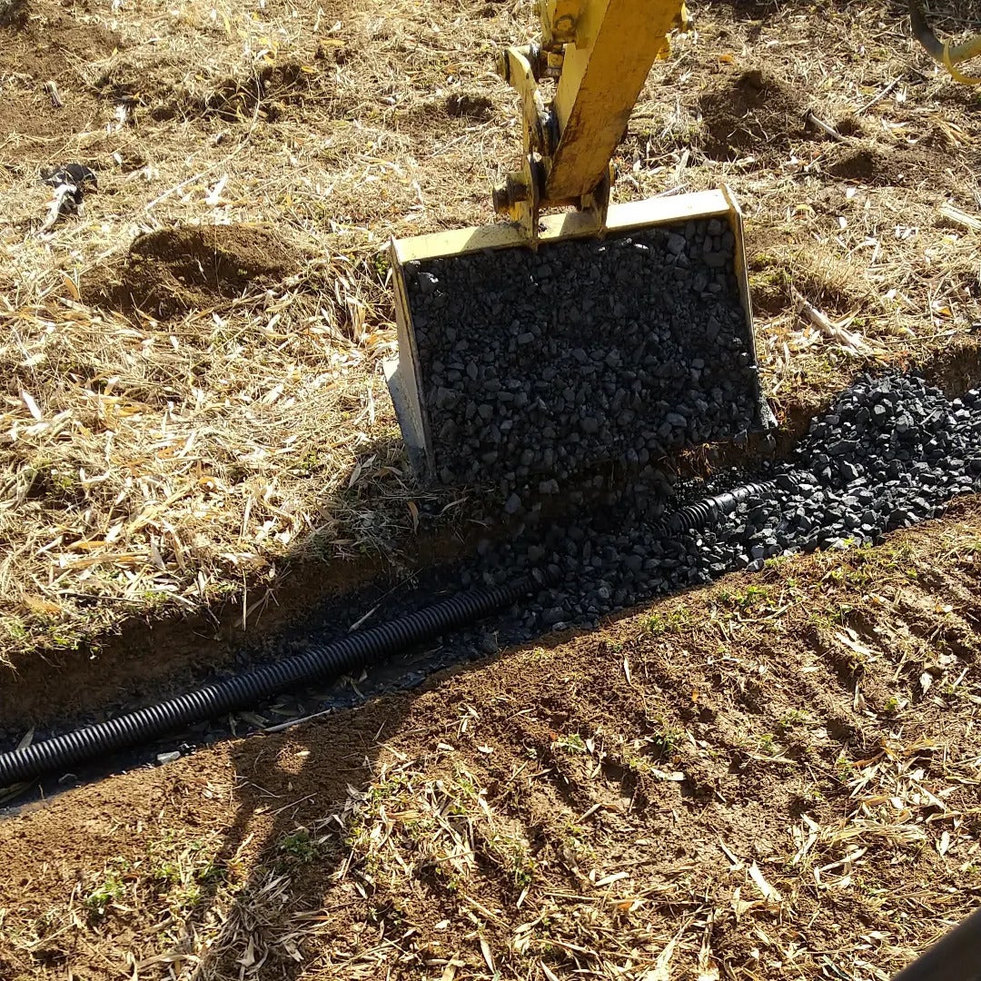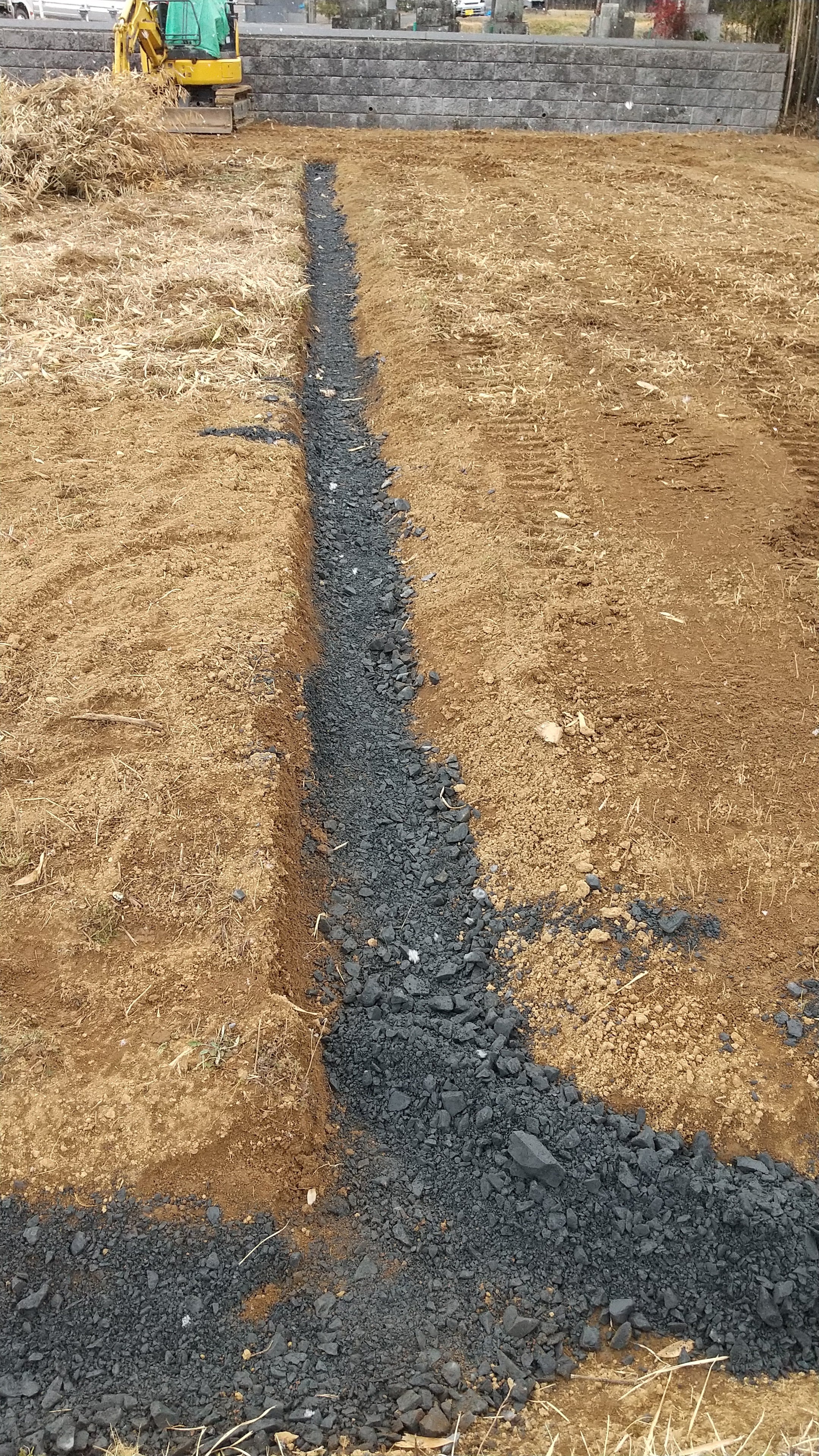 毎日少しずつですが、ハウス建設に向けて進んでいます!畑の真ん中に溝を切り、排水パイプを這わせて、砂利で埋めました!多分大丈夫だと、、(^_^;)
