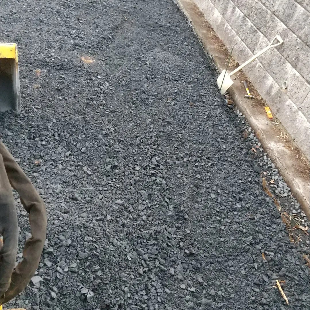 進入路に砂利を運んで敷きました‼