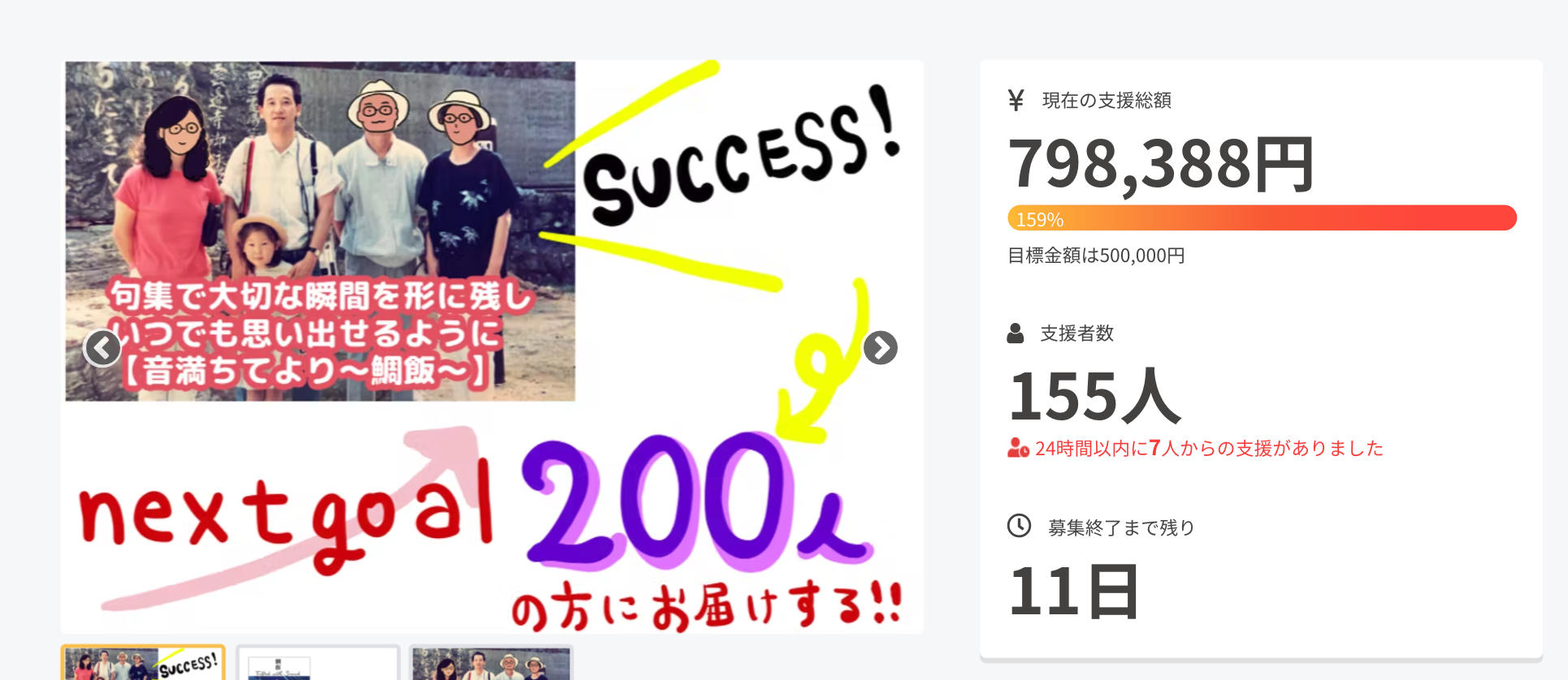 【感謝】2日で100%達成致しました!!