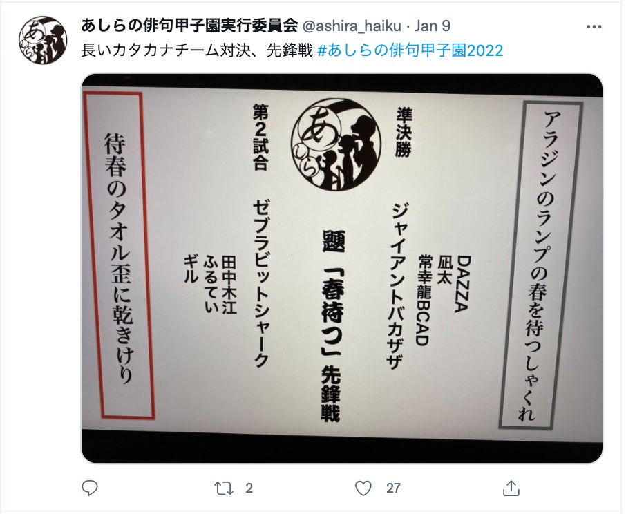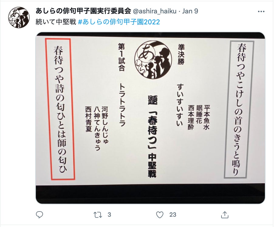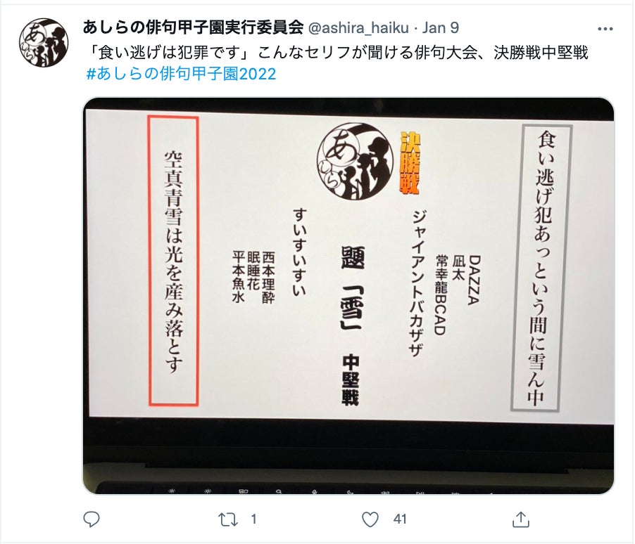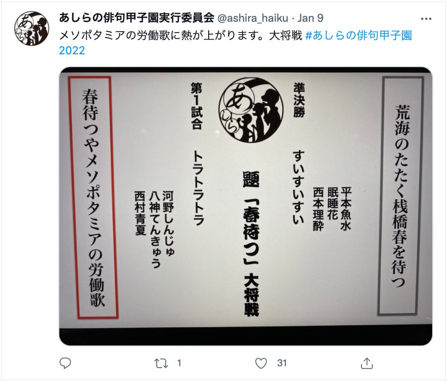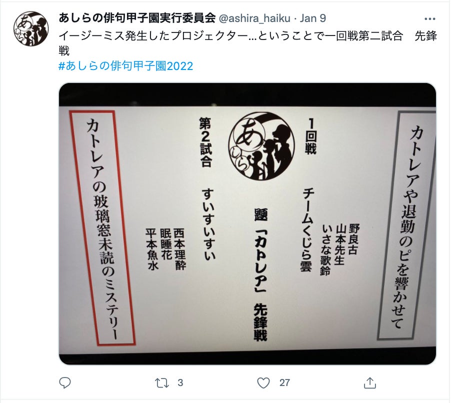 2022年1月9日にあしらの俳句甲子園が開催されました。