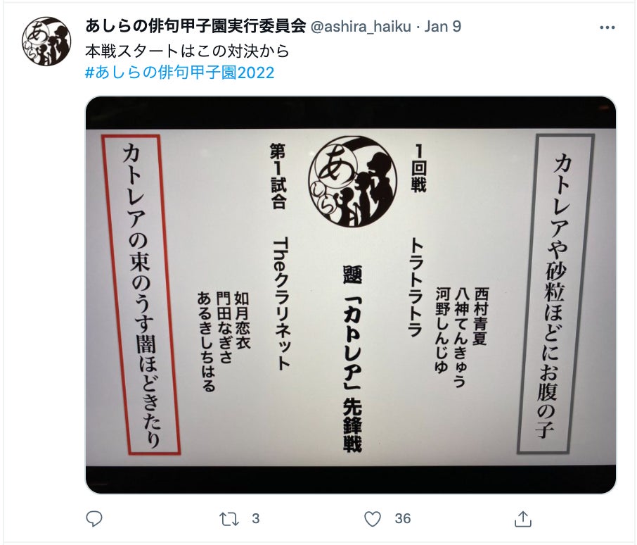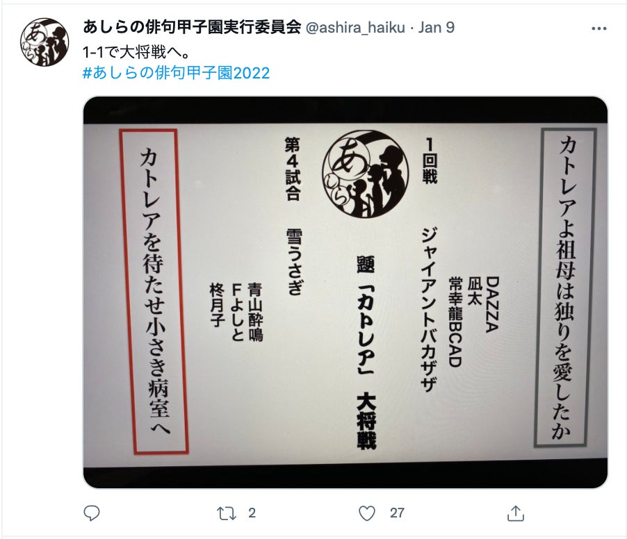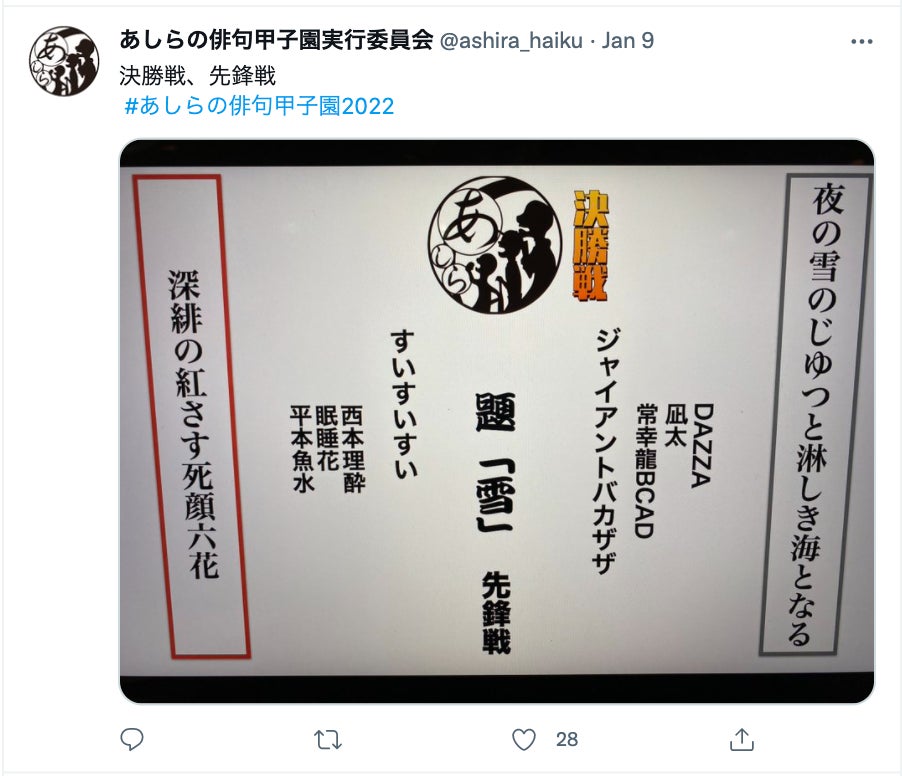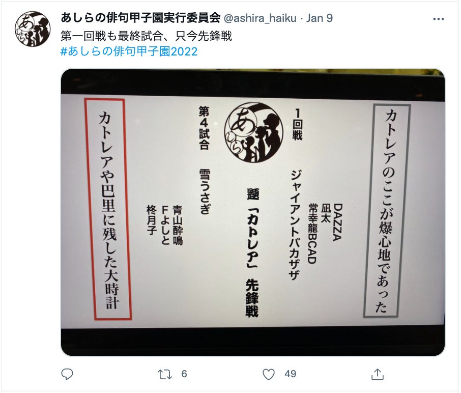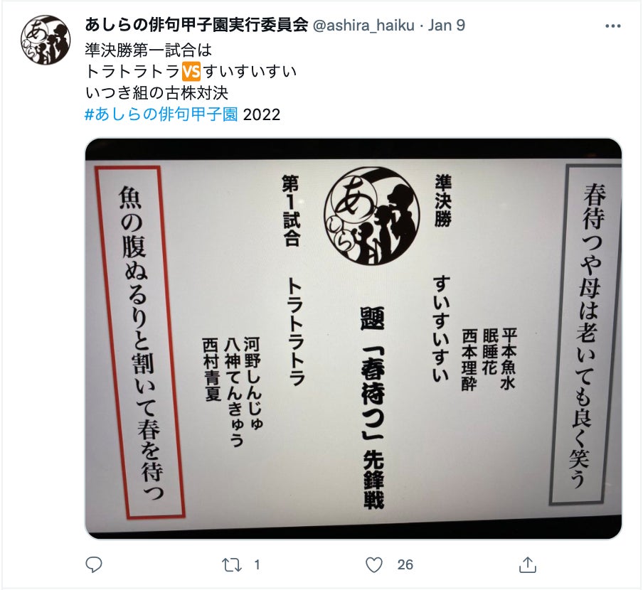 2022年1月9日にあしらの俳句甲子園が開催されました。