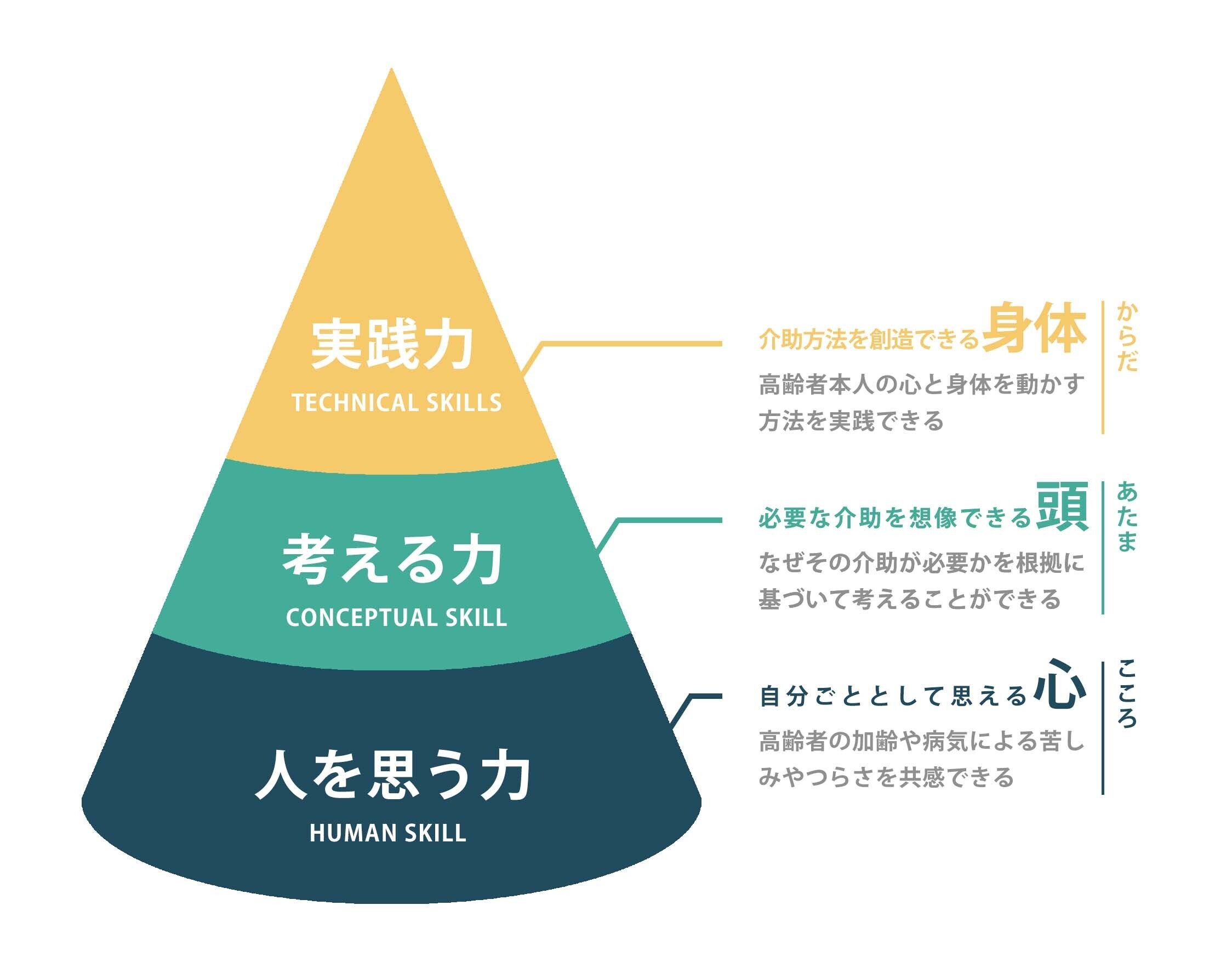 「上司から指示を受けたからやっている」「介助方法がよくわからないけどやっている」といった根拠のない介助ではなく、目の前の高齢者にとってその介助が必要なのかを根拠をもって説明できる力、その根拠に基づいて高齢者の力を活かす介助ができる力、困っている高齢者の気持ちを汲み取ることのできる力を兼ね備えた、プロの介護職員を育成することにより、多様化するニーズに合った質の高い介護サービスが提供できるようになります。