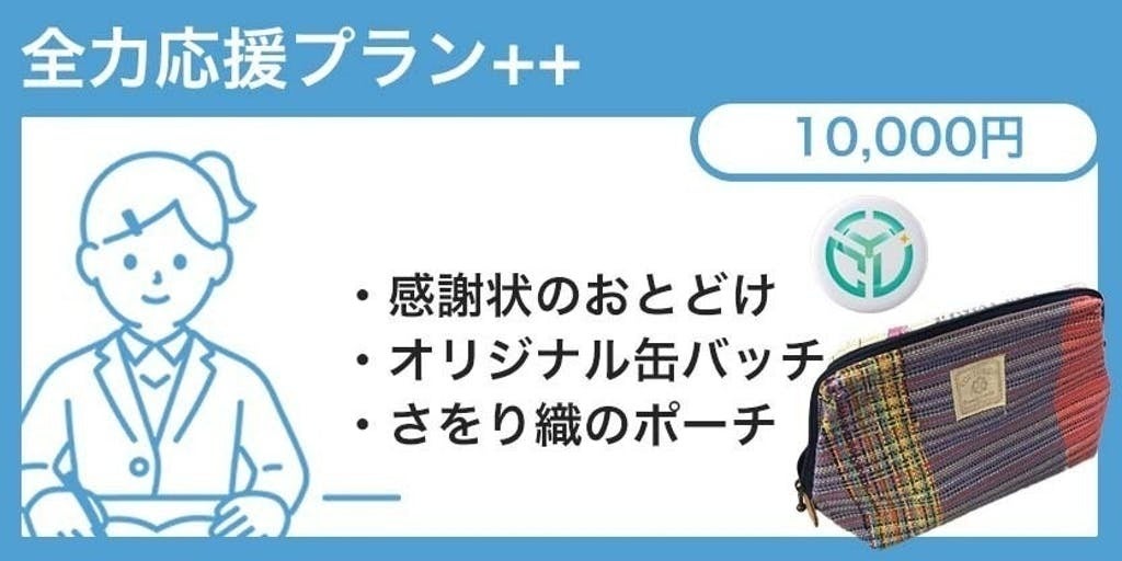 【全力応援プラン】感謝状+缶バッチ+さをり織のポーチ