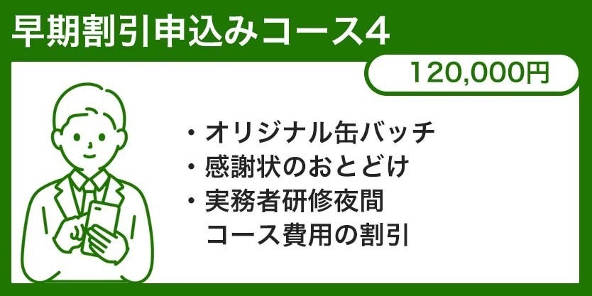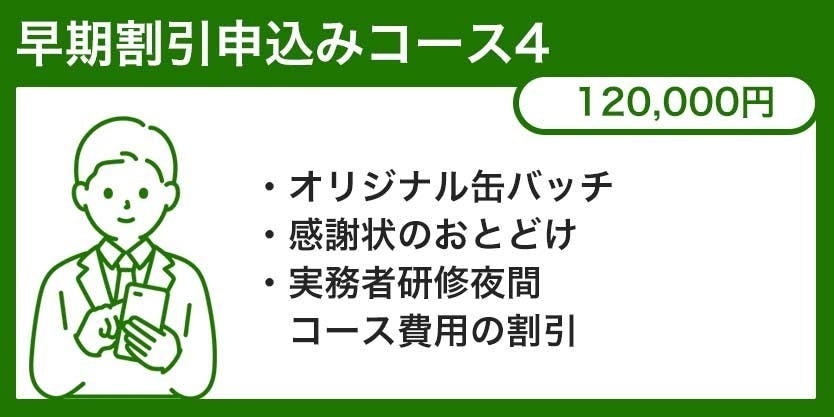 6名以上10名までご受講の場合は4名様分が無料になるリターンです。