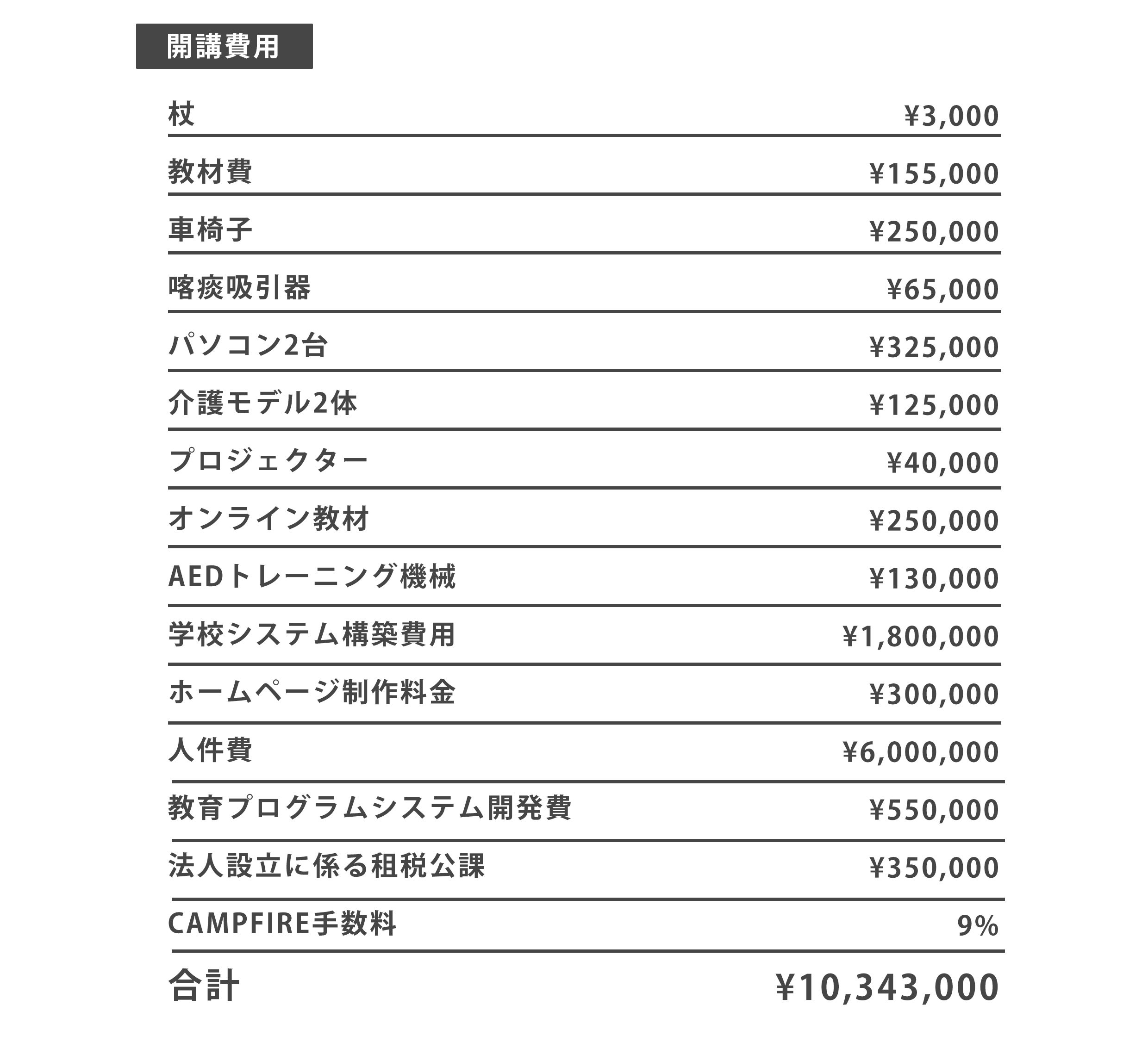 このプロジェクト実施にあたり、ご支援いただいた資金は上記の費用に大切に使わせていただきます。