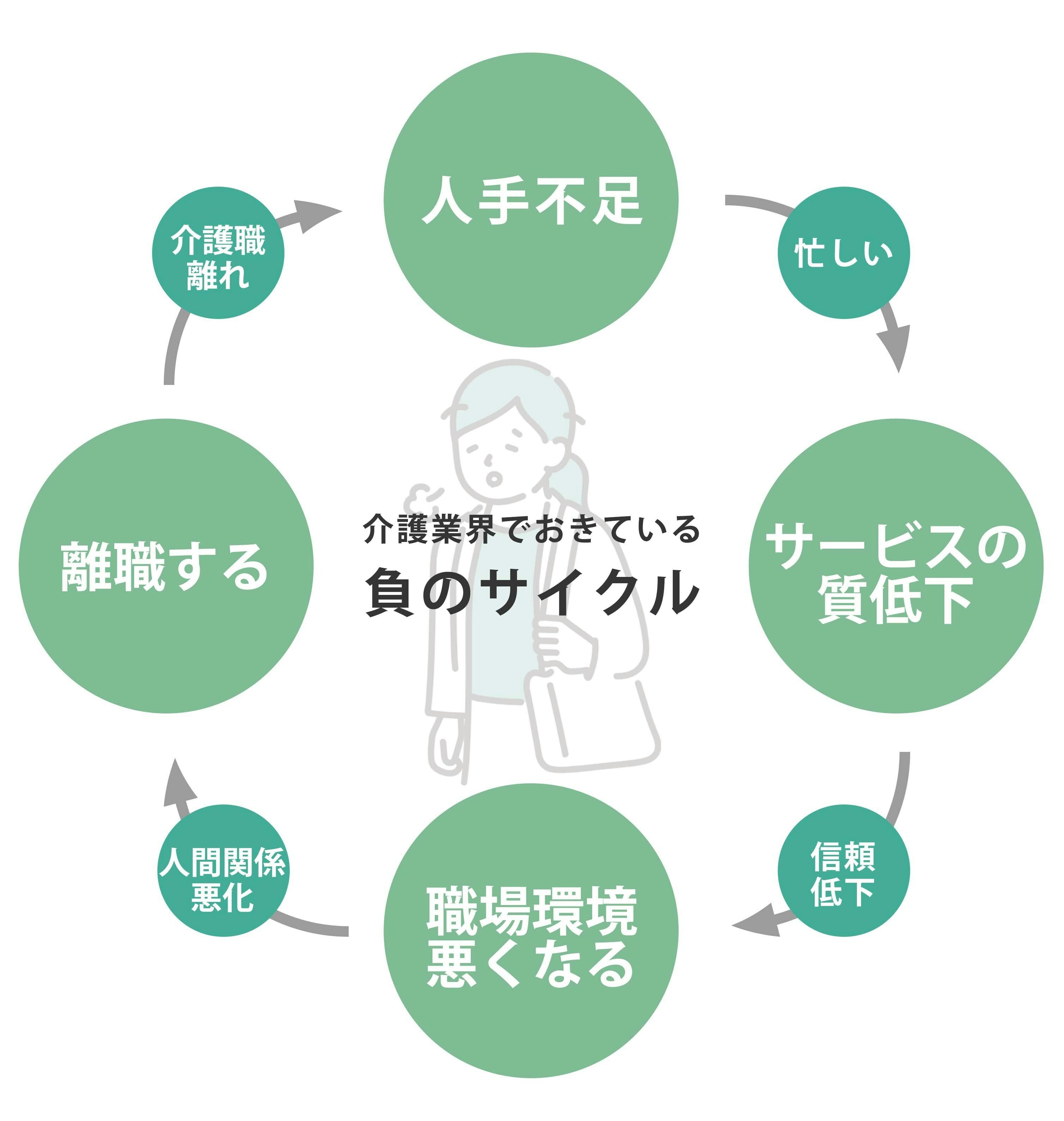 そうしているうちに働く環境はどんどん悪化し、ご高齢者、ご家族との関係性、そして職員同士の関係性までもが悪化していきます。