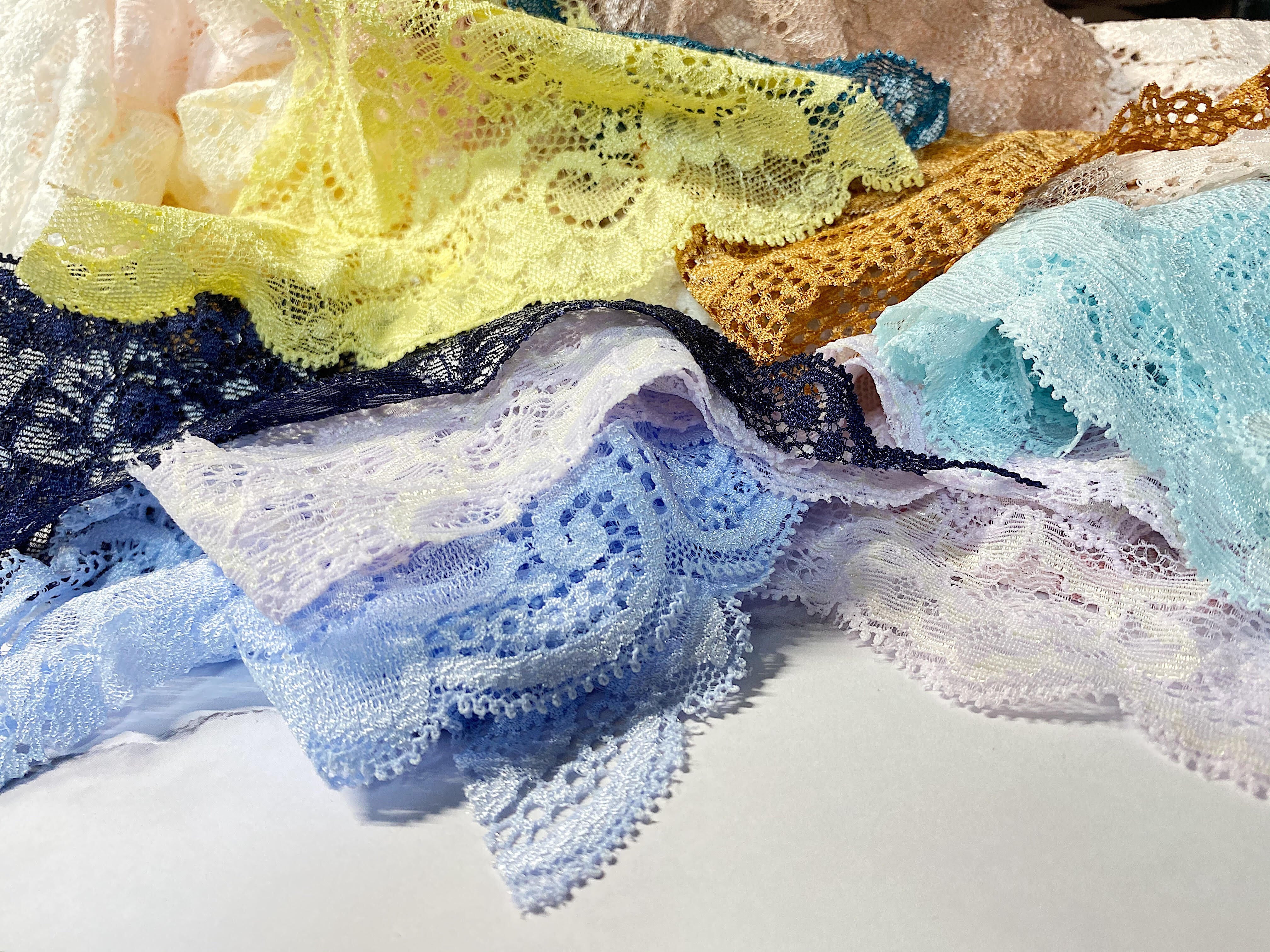 1着分は作れない、小さなレースたちを組み合わせればオンリーワンのマルチカラーランジェリーが完成します。