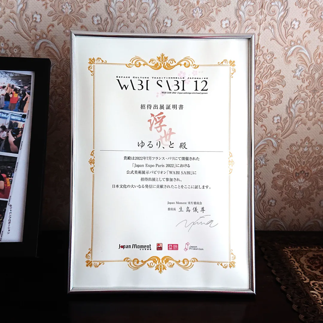 2022/11/22 22:00こんにちは、ご無沙汰しております。太田瀬広子です。いかがお過ごしですか?11月も後半に差し掛かる頃。来年に向け、準備を始めている頃ではないでしょうか。【五色の夢で彩りたい】プロジェクトのしめくくりともいえる「招待出展証明書」と「開催レポート」が届きましたので、ご報告します♪『招待出展証明書』が届いて驚いた件額入りで届きました!WABI SABI 12招待出展証明書ゆるり、と 殿貴殿は2022年7月フランス・パリにて開催された「Japan Expo Paris 2022」における公式美術展示パビリオン「WABI SABI」に招待出展として参加され、日本文化の大いなる発信に貢献されたことをここに証します。まさか証明書を送ってくださるなんて思わなかったので、届いた時は驚きました!そして何よりうれしかった!日本文化の大いなる発信に貢献することができたのか!文字で伝えられ、じ~~~~~んと。幸せな気持ちになりました。このプロジェクトにご参加してくださったあなたも、「日本文化の大いなる発信に貢献」した一人です。WABI SABI パビリオン開催レポートが届きました先日届いたレポートによると、3年ぶりに開催されたヨーロッパ最大のジャパンイベントJapan Expo Paris 2022年度の実績(7月14日~7月17日)・来場者数:254,084人(2019年度来場者数:243,864人)ジャパンプロモーションさんが運営する(私が招待出展した)、日本の伝統・地域文化を伝えるパビリオン「WABI SABI」。日本人が持つ人生観『浮世』を12年目のテーマにし、・出展ブース:79(「ゆるり、と」のブース番号は「38」でした!)・出演ブース:16グループが日本文化を発信していたそうです!数字を把握していなかったので、数をみてびっくりしました(笑)そして、・WABI SABI来場者数:101,000人自分の日常ではありえない来場者数に、これまた驚き!いつもイベント事では人酔いして最後まで楽しめなくなっていたのですが、このJapan Expoでは全く人酔いせずに、大いに充実した日々を過ごせました。俯瞰してこれまでの物事をみてみると、転換期の「シーズン1」を飾ったのがJapan Expo 35歳くらいから「このままでいいのかな?」と人生の転換期に入り、38歳でそれまで勤めていた和裁士という仕事を辞め。社会の枠にとらわれすぎ、最終的に病んで引きこもり。「自分を活かしていきたい!」とパーソナルカラーと飾り結びで右往左往模索してようやく、飾り結びという表現が、今の自分にとって一番わくわくして『今在る』状態になれる活動だと腑に落ちています。まじかで見ると点と点だったものが、遠くから見ると、一つの流れになっていて。すごく面白い!恋愛趣味レーションゲームが好きで、よく自分の人生をゲームとして俯瞰して見る癖があるのですが、これまで孤独死しない「ノーマルハッピーエンドルート」狙いで進めてきましたが、これからは「溺愛ラブラブハッピーエンドルート」狙いで。Japan Expoで出会った作家さんたちの、日本文化の多様性。自分にはない表現との出会い。フランスで出会った人や、物事。違いを敬う。違いを愛おしむ。その感覚がとても心地よかったので、溺愛ラブラブハッピーエンドルートを人生目標にシーズン2 あらたな目的と目標を立て、邁進していきます!これまでお付き合いしてくださり、ありがとうございました。引き続き、応援よろしくお願いいたします。ゆるり、と太田瀬広子 もっと見るご報告「遅くなりましたが、ただいま!」