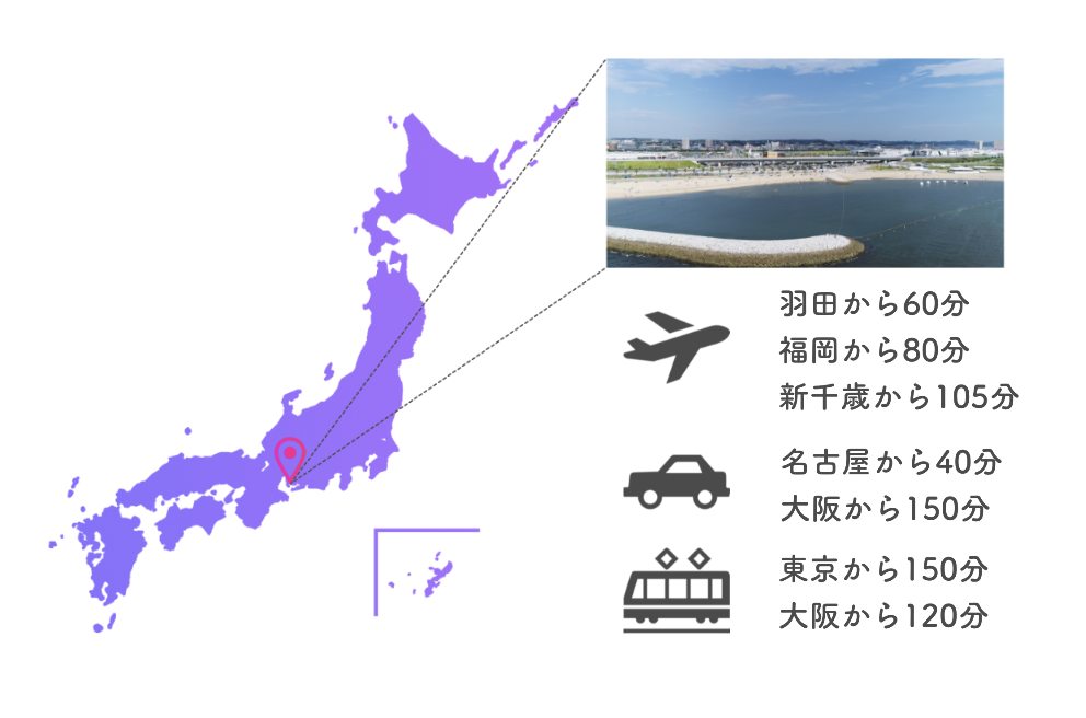 セントレア空港の目の前に位置するこのビーチは、名古屋からはもちろん、各主要都市からもアクセスがしやすい場所!その気になれば、本場フィンランド🇫🇮ヘルシンキへも10時間でアクセスできちゃいます!(笑)