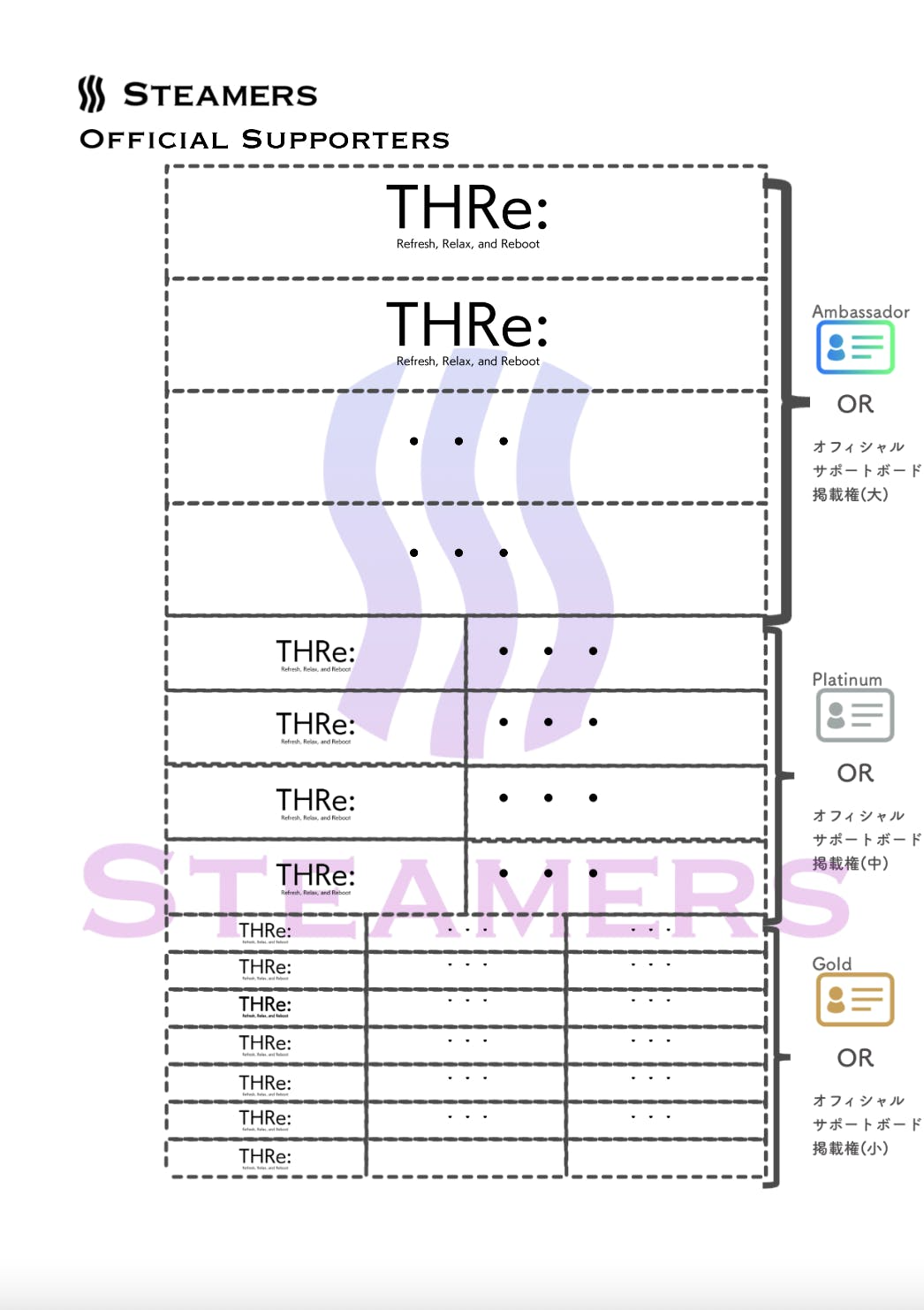 Steamersの会員権と様々なリターンがセットになった、お得なパッケージプランご用意いたしました!通常Bronzeから始まる会員ランクを、上位ランクから始められるのは、CAMPFIREだけです!