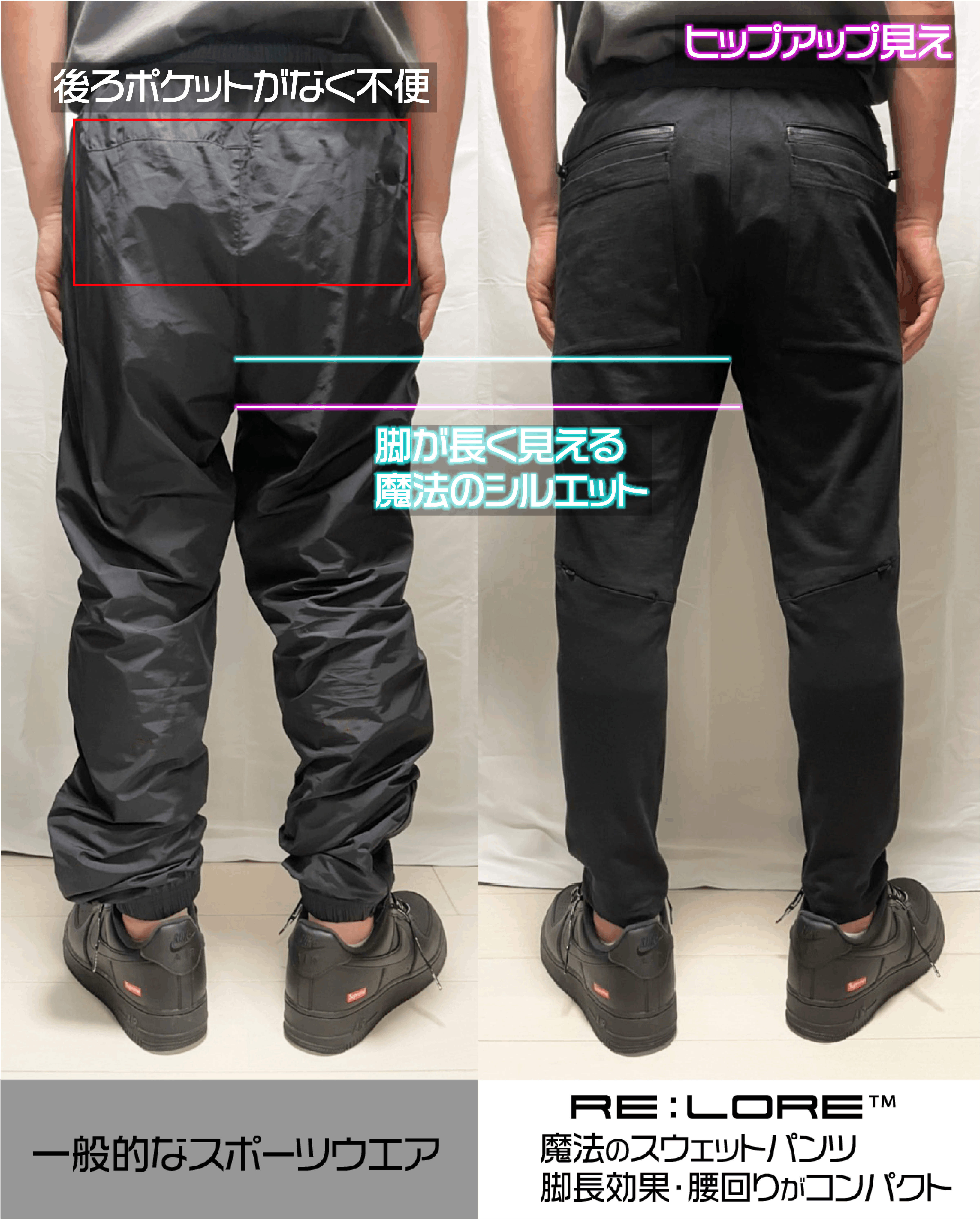 また一般的なアパレルの原価率:15〜30%に比べ、RE:LORE™のスウェットパンツは無駄を極限まで削減した上で、『原価率:驚異の50%』と限界まで高く設定しているので、圧倒的なコスパを実現しています!