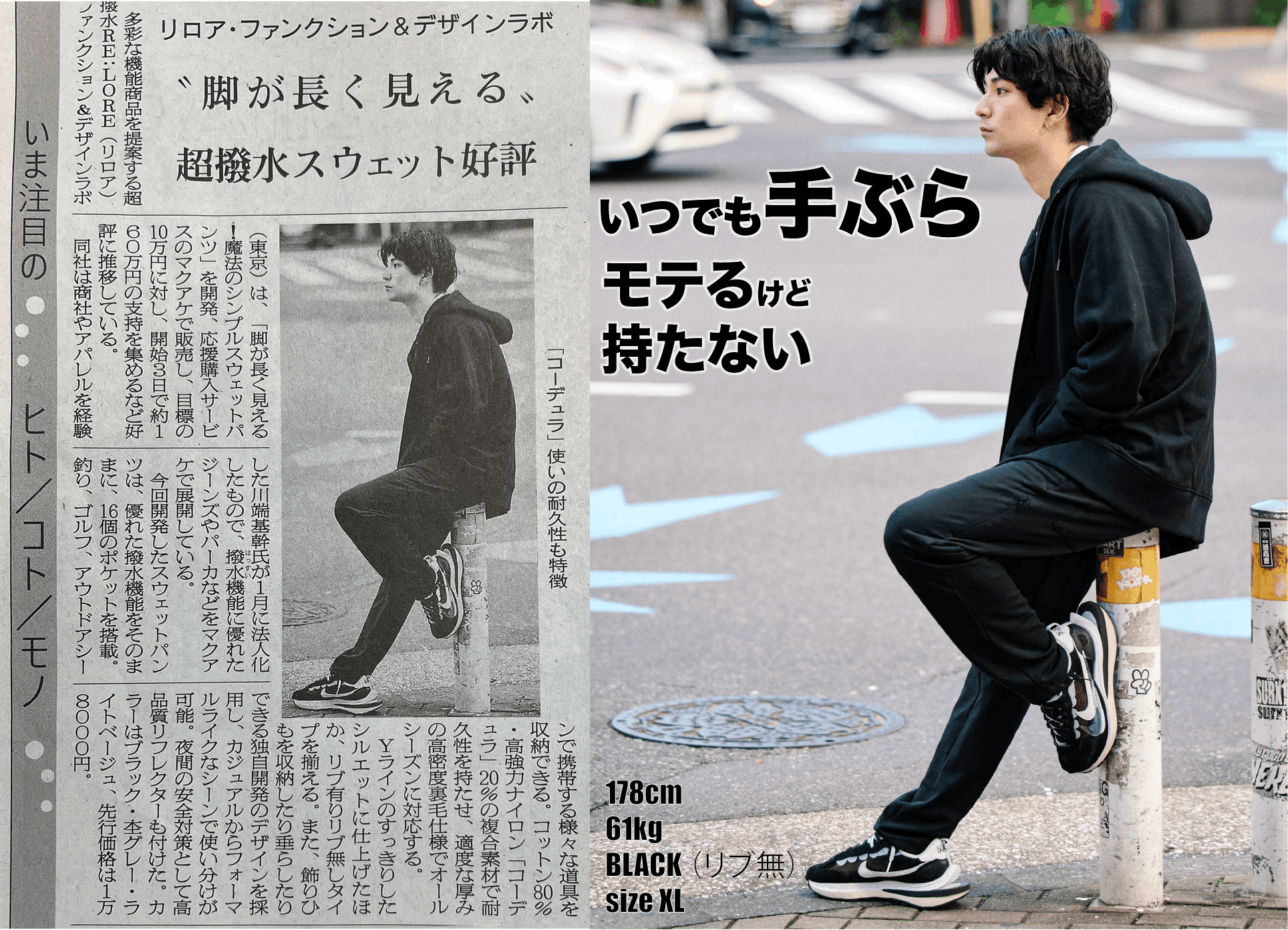 繊研新聞にも「魔法のスウェットパンツ」が掲載されました。
