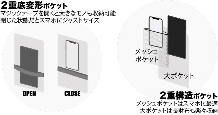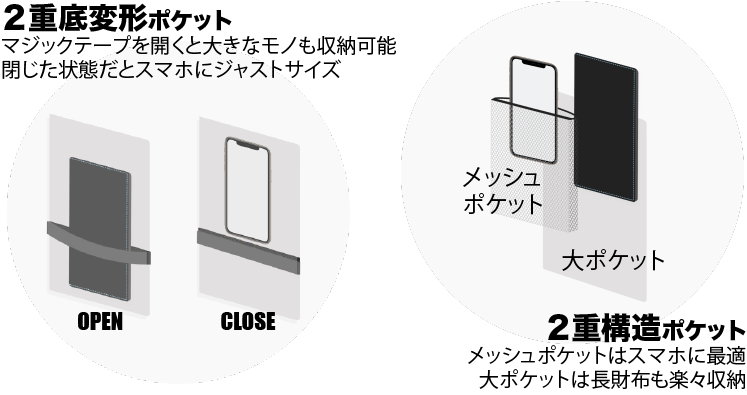 ※RE:LORE™オリジナルの『2重底ポケット』は、運動の妨げにならない腿の後ろに荷物を収納できるように設計しています。