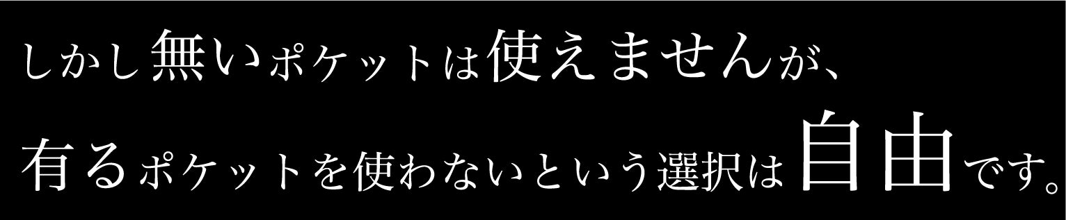 無駄を徹底的に削減した分、生地、縫製、パターン(型紙)、ファスナーや金属パーツなど、細かな点まで一切妥協せず最高のモノを厳選し、同価格帯では『圧倒的No.1クオリティ』を実現していると自負しております。