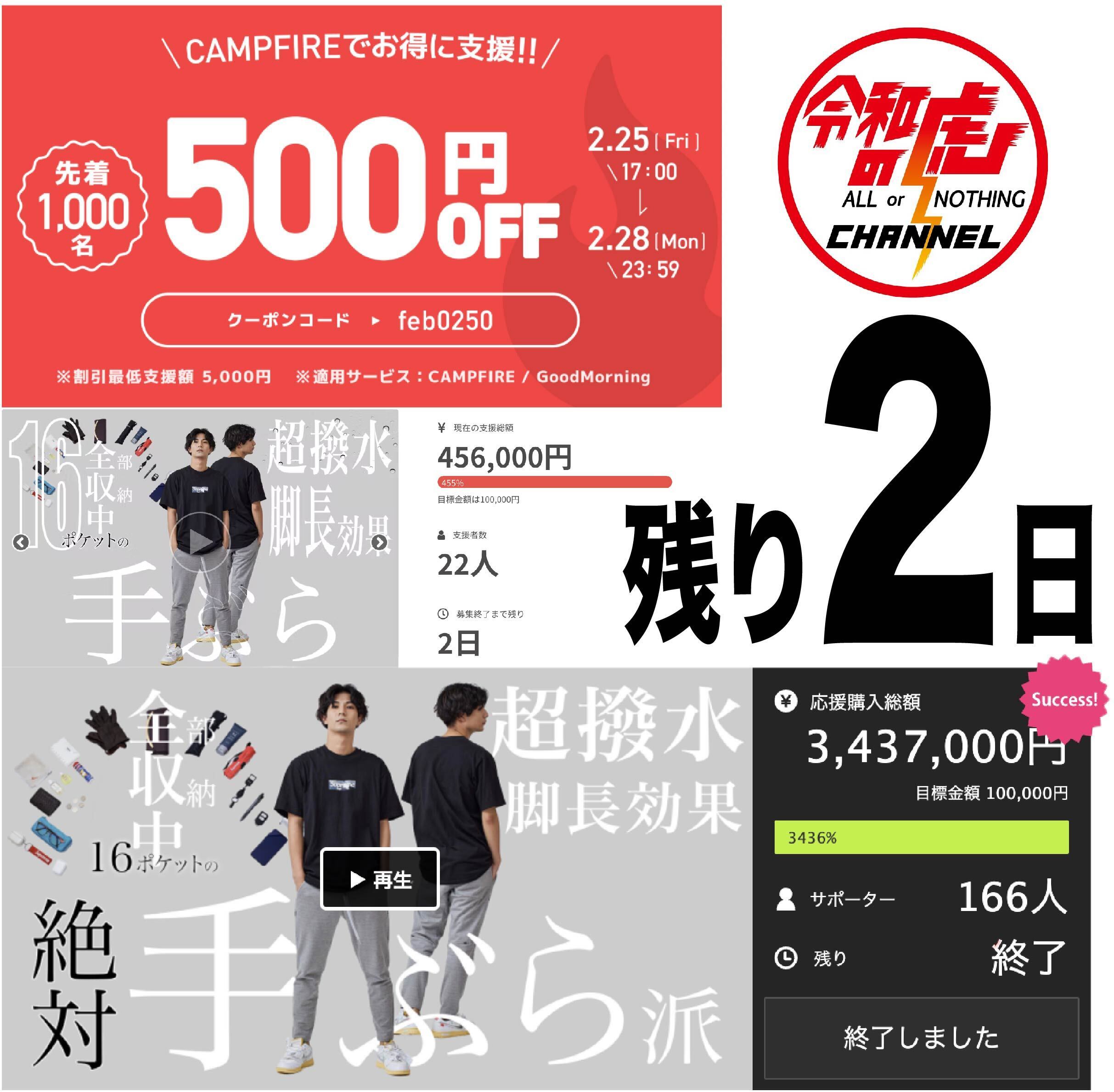 ご支援者さまお世話になっております。RE:LORE™(リロア)の川端です。おかげさまで、昨日無事プロジェクトが終了致しました。達成率608%という素晴らしい結果になり、大変嬉しく思います。本当にありがとうございました。商品はプロジェクトと平行して生産を進めており、4月下旬頃にお手元にお届けできる見込みです。お時間を頂戴してしまい大変恐れ入りますが、品質最優先で丁寧にお創りさせて頂きます。進捗状況は随時活動報告からご連絡差し上げます。なおRE:LORE™の活動については下記からもご覧いただけます。【Instagram】https://www.instagram.com/relore_official/【TikTok】https://vt.tiktok.com/ZSewY3HDo/【公式LINE】https://lin.ee/4FOvMEt【ONLINE STORE】 https://relore-official.com 引き続き何卒宜しくお願いいたします。RE:LORE™ 川端