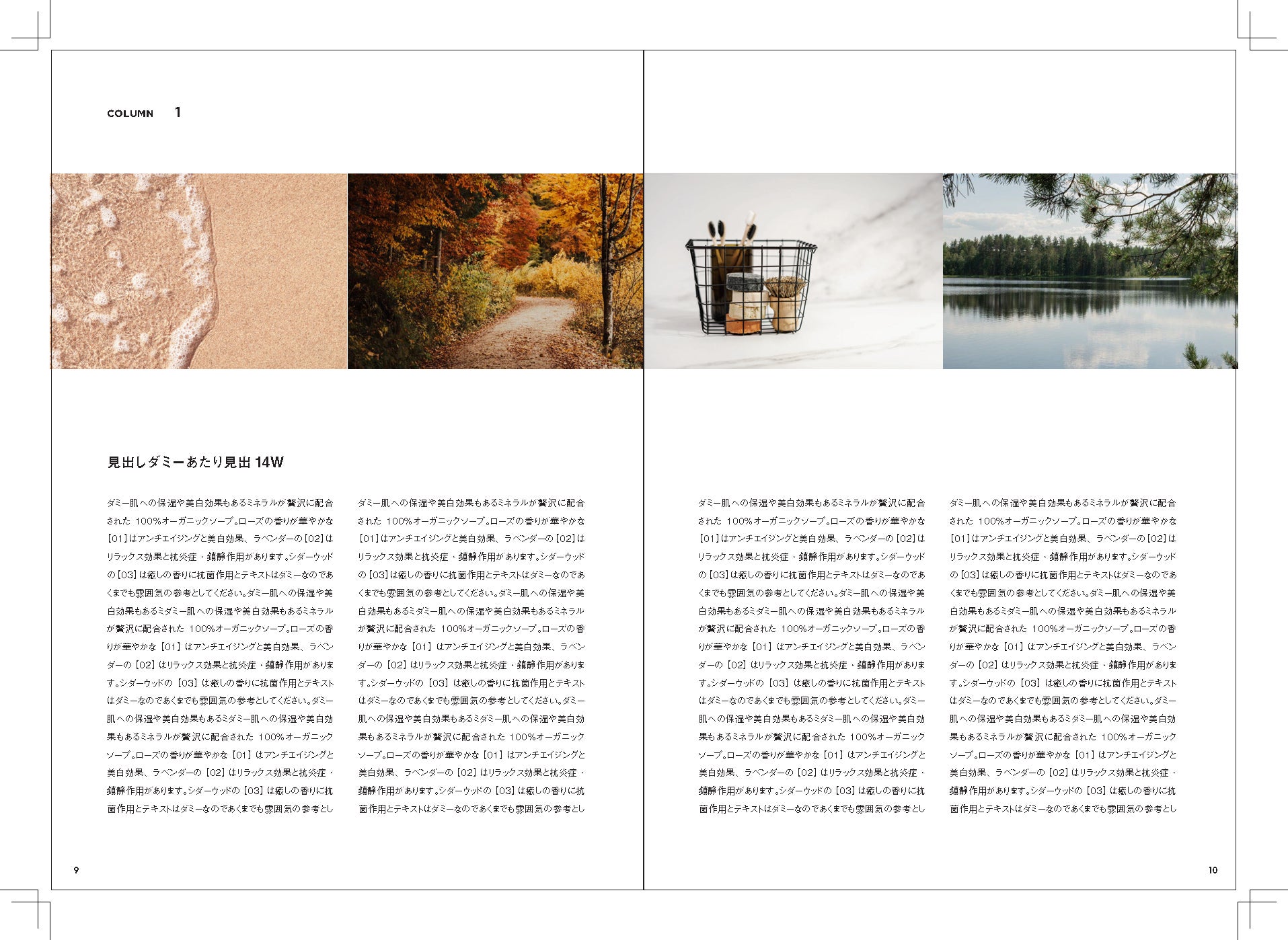 また、ビジュアルエッセイやライフスタイルエッセイとしてもレイアウトの組み合わせで、非常に遊びのあるメリハリの効いたドラマチックな本を作ることができると思います。