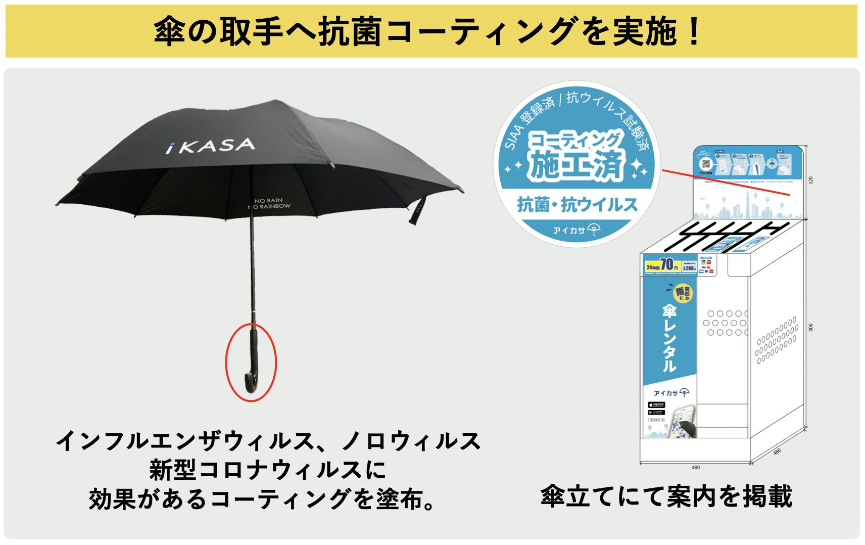 突発的な⾬にもビニール傘をその都度購⼊せずに、駅や街中で丈夫でサスティナブルなアイカサを借り、⾬が⽌んだ際には最寄りの傘スポットに傘を返却することでエコに貢献しながら(アイカサ1回の利⽤でCO2約692g削減)⼿ぶらで便利に移動ができるのが特徴です。