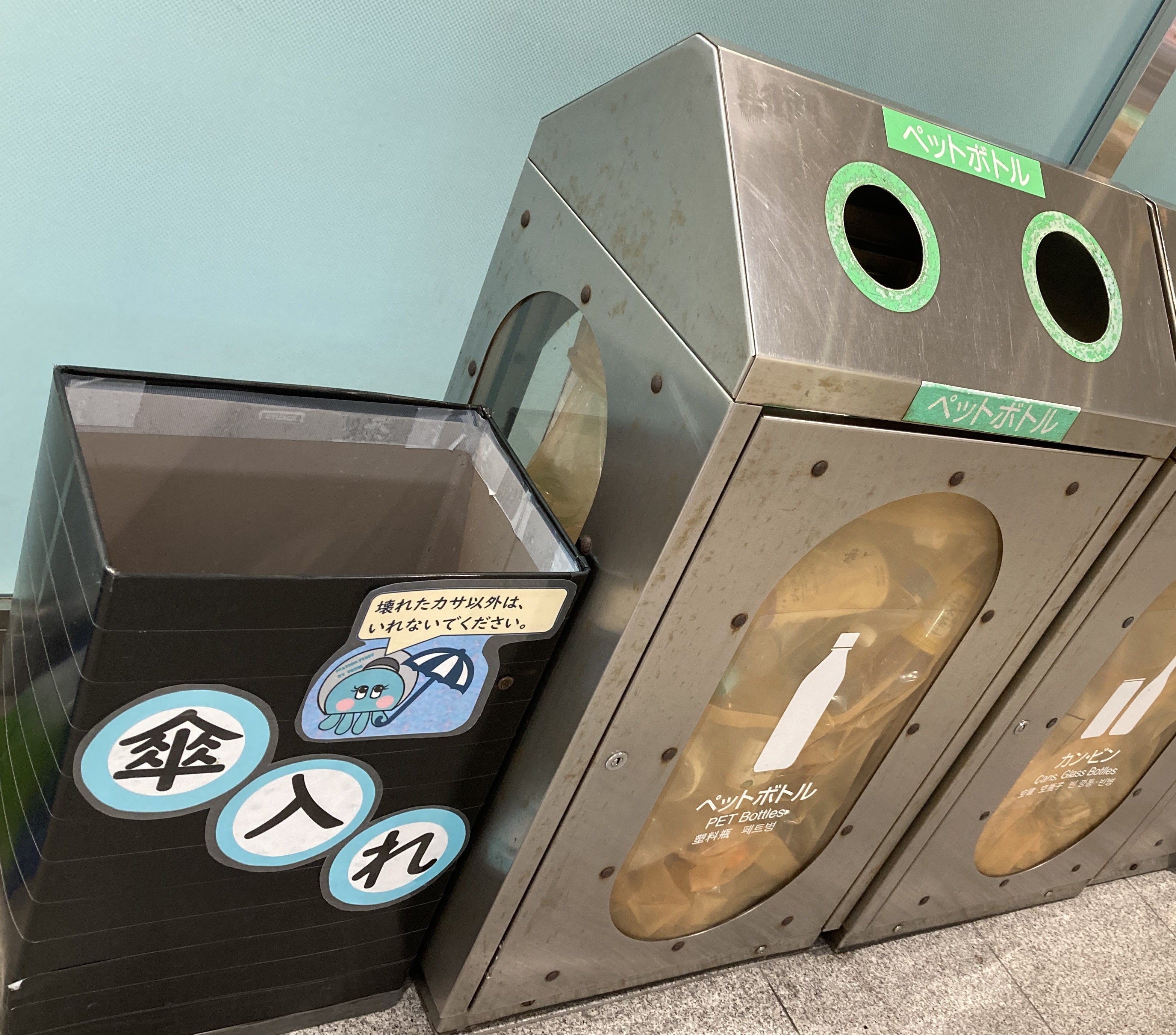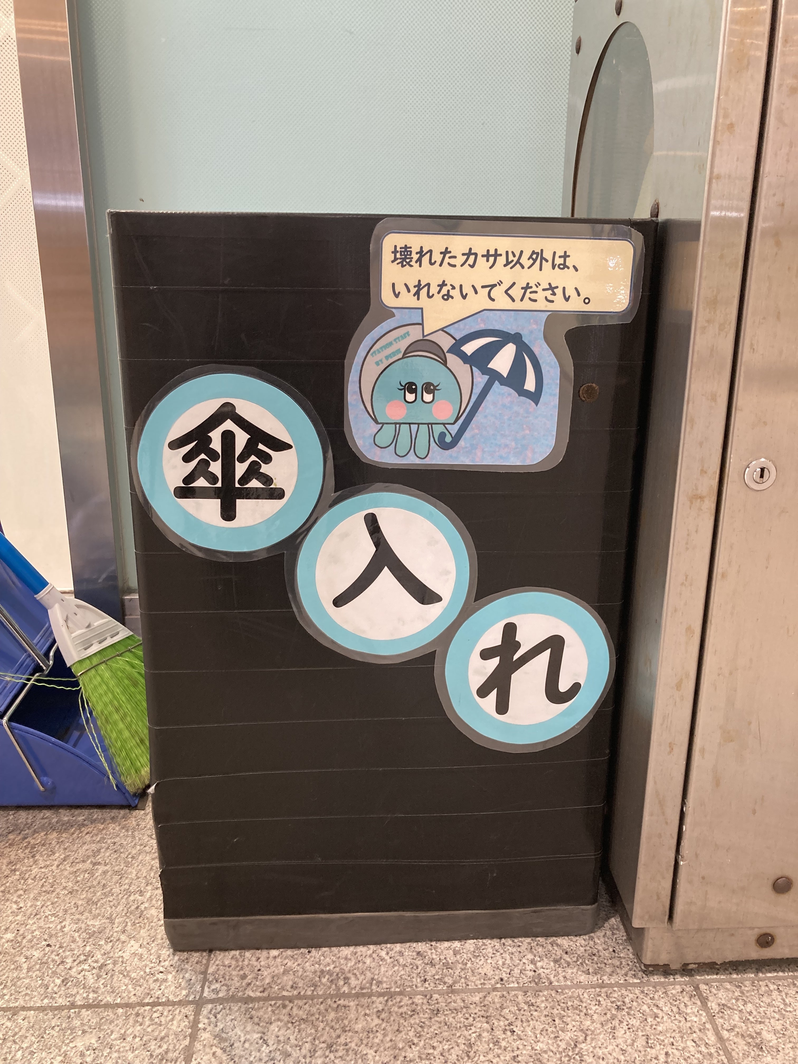 海浜幕張駅では、破損したビニール傘用のダストボックスも登場しています!
