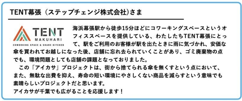 「使い捨て傘削減」と「千葉での雨の日の移動を快適にすること」