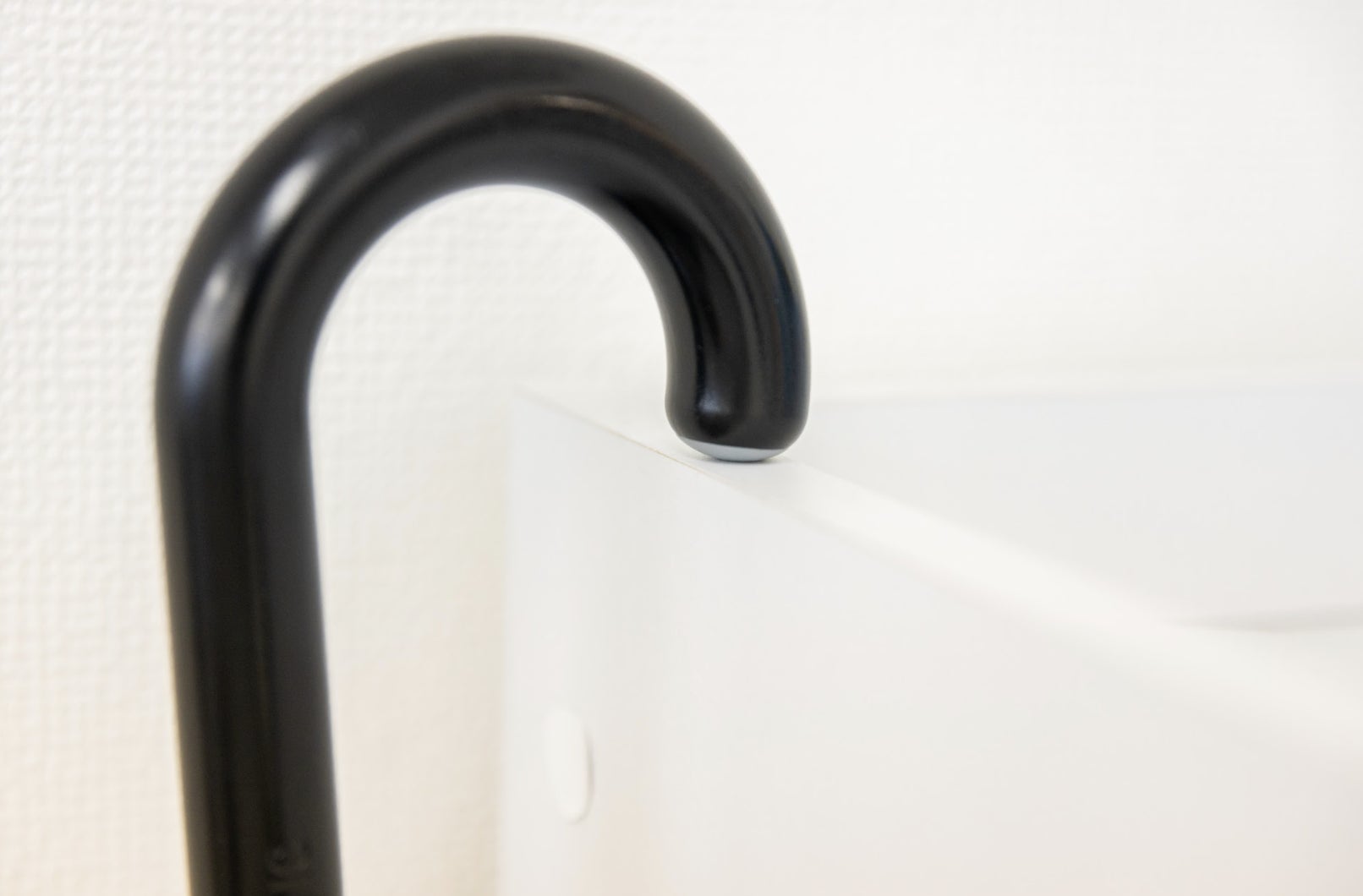 →カフェなどでちょっと傘を起きたい時やシェア傘を無くさないよう近くに置いておきたい時、傘の取手の先端にストッパーがついているので置き場所に困りません