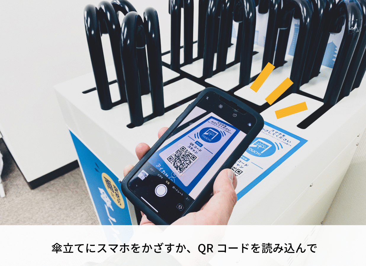 “⾬の⽇を快適にハッピーに”と“使い捨て傘をゼロに”をミッションに「急な雨で傘を持ち歩いていなかったとき、近くのスポットで傘を借りられて好きなスポットで返せる」そんなスマートな雨の日の生活を実現させます。
