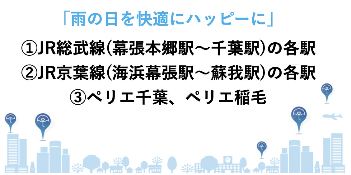 私たちは、少しでも早く千葉県の皆様の元に、傘シェアリングサービスをお届けするべく、準備を進めておりますが、設置予定箇所の変動やスケジュールの時期が遅れる可能性がございます。