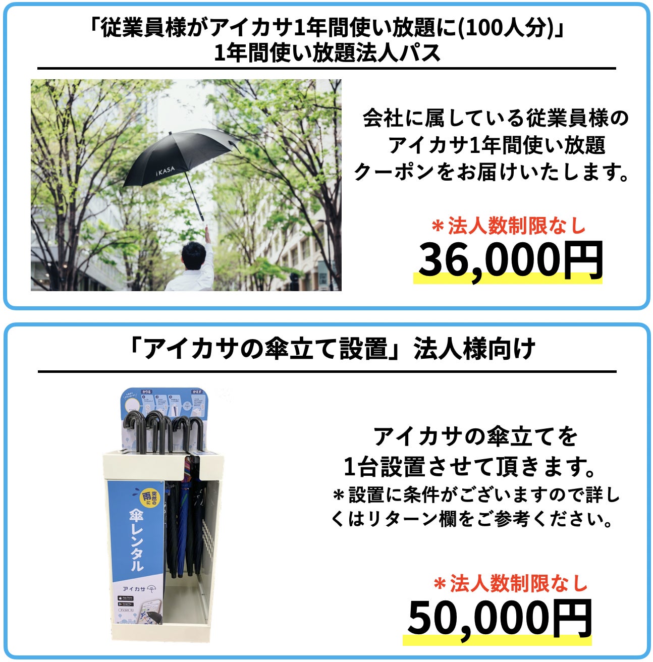 今回1年間アイカサの使い放題プランをご用意させて頂きましたので、年間に1人当たり36回以上(月に3回利用)アイカサを活用頂くことができれば、300人の合計で10,000回以上の利用回数になります。