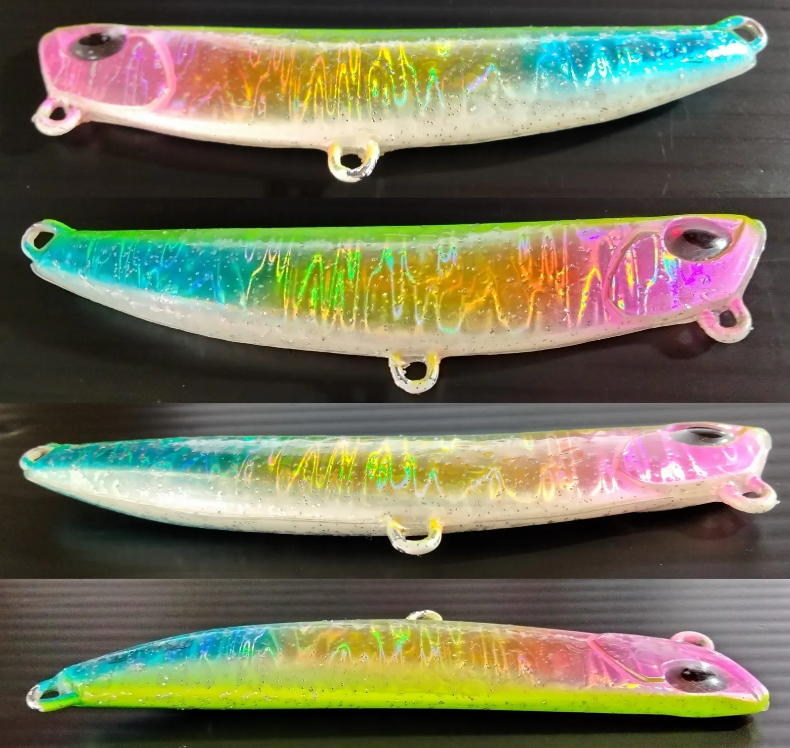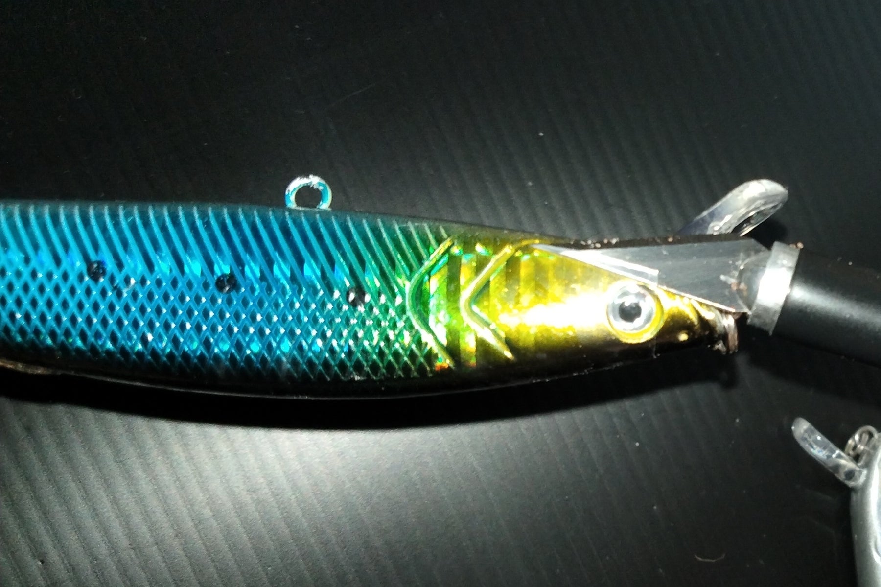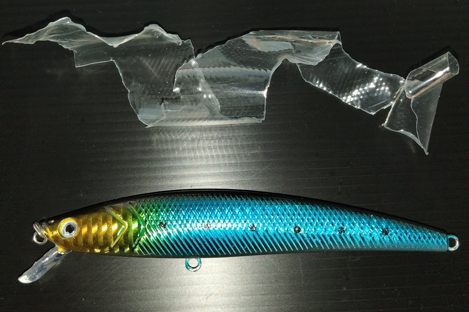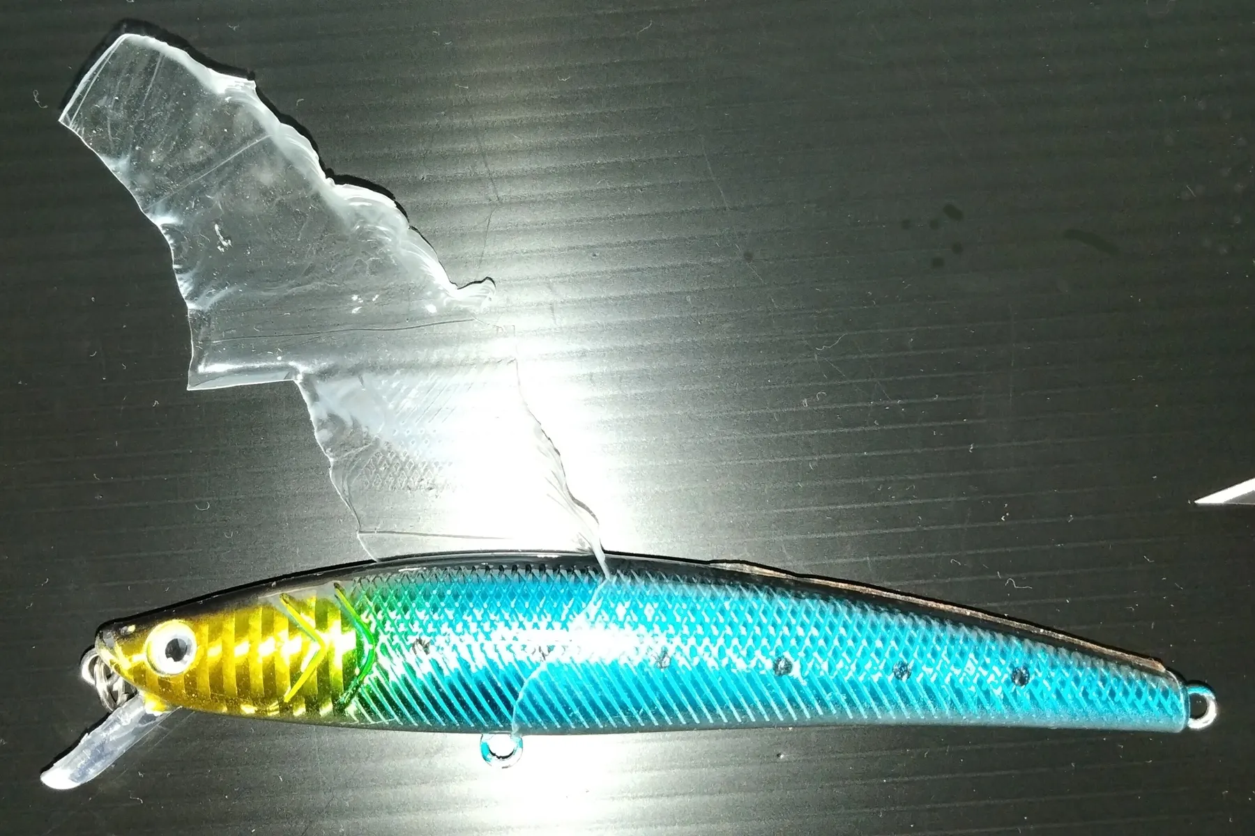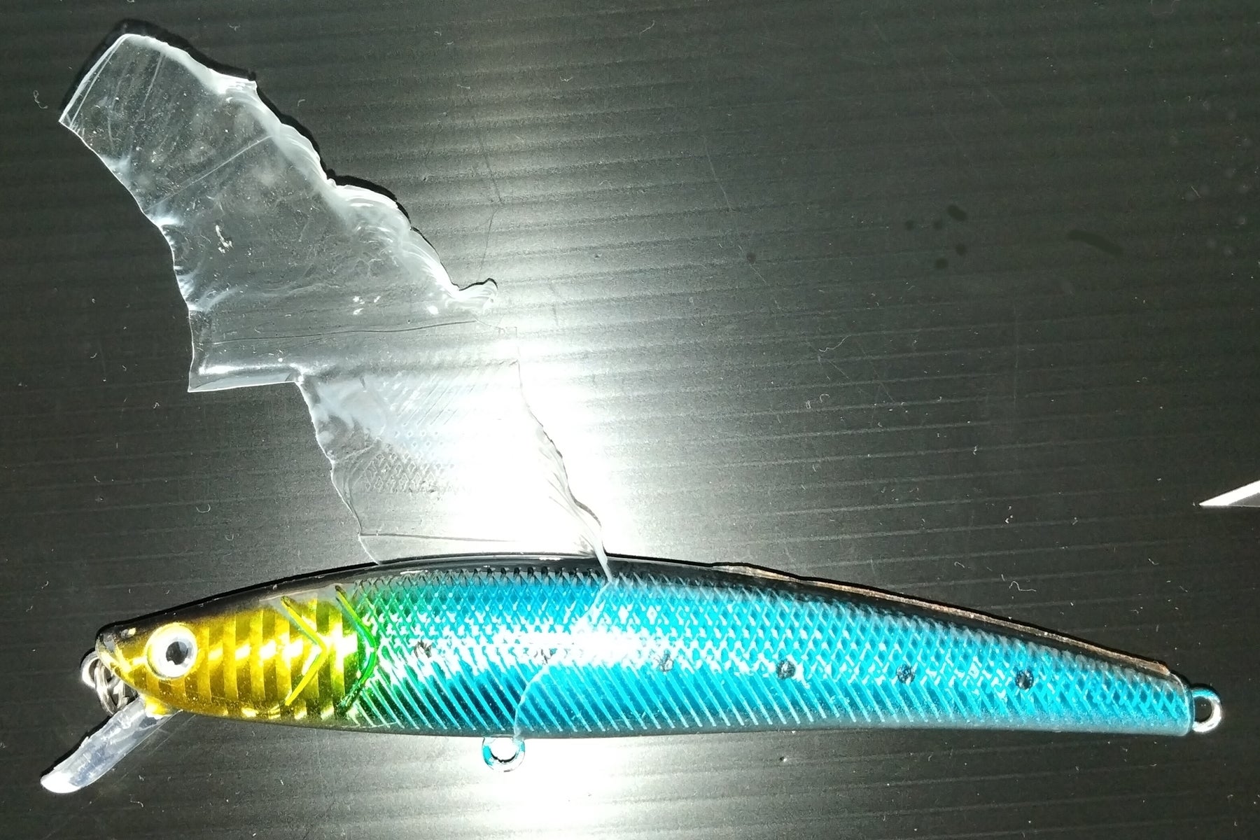 第二の問題点・・・透明度がいまいちでした。厚いせいもあるのですがせっかく光っているホログラムの反射が曇ってしまっては意味がない。魚へのアピールが目減りしてしまう。