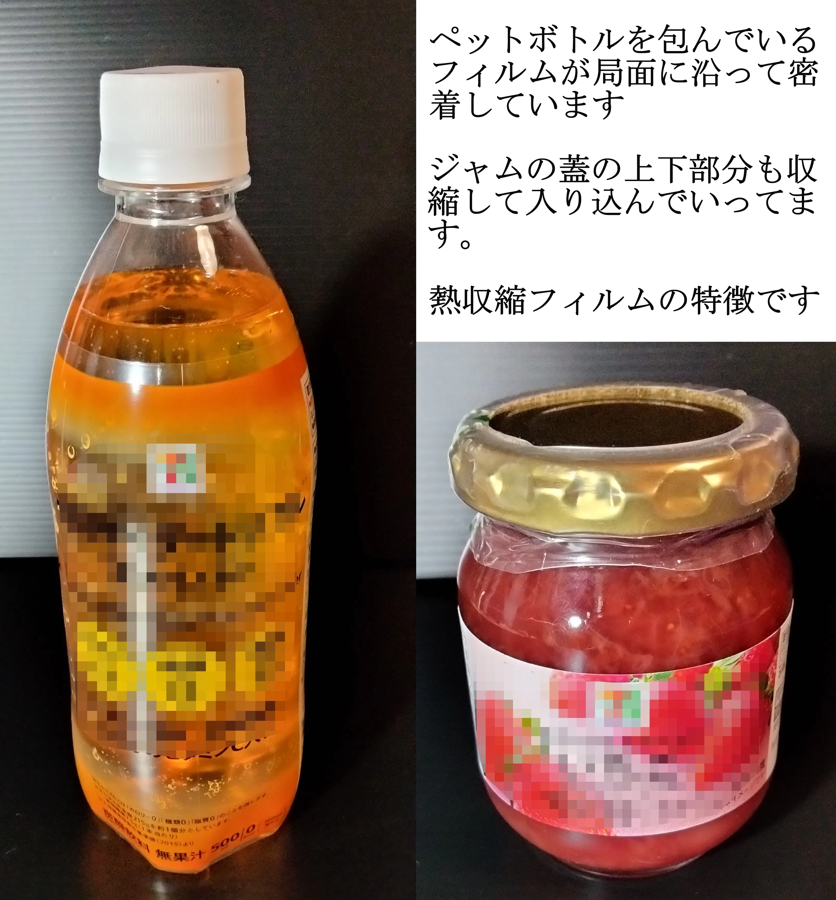 よく使われいるのはペットボトルの周囲を包んでいたりジャムの蓋とか化粧品など購入時に包まれているビニールっぽいフィルムのことです。