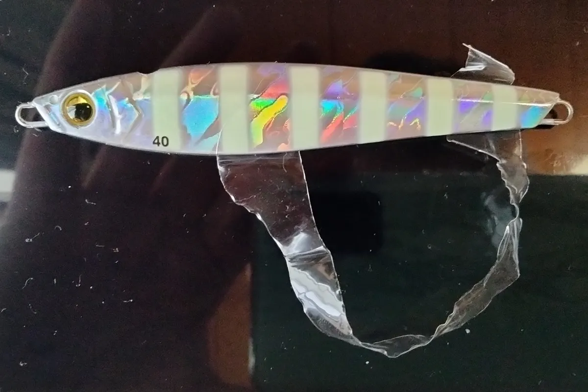 剥したフィルムにルアー表面の凹凸が移ってます。
