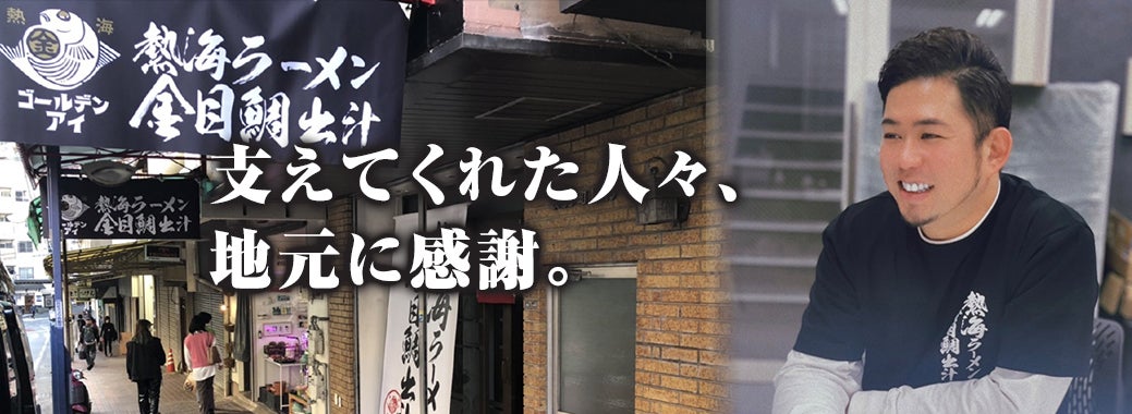 コロナや熱海土砂災害から、ますます「地域活性」「地元への感謝と恩返し」の想いが強くなり、2022年4月、伊豆名産の金目鯛を使ったラーメン店「熱海ゴールデンアイ」を開業させていただいた次第です。