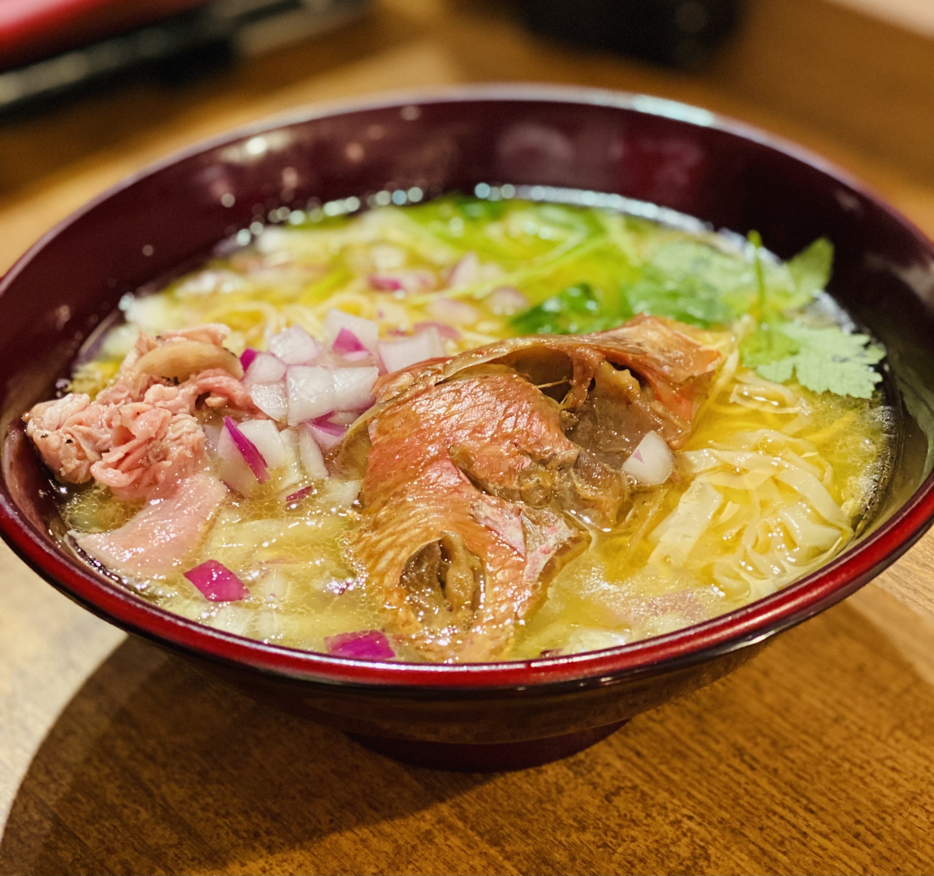 ゴールデンアイのラーメンは、「魚介」や「海の香り」などという表現では収まらない、金目鯛の味がしっかり感じるラーメンであることを目指しています。