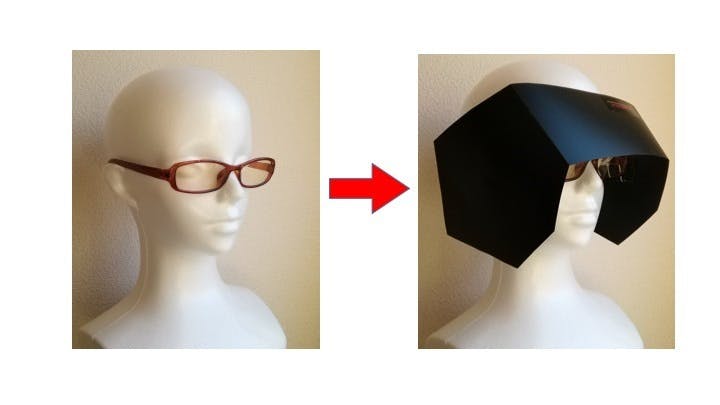 ・顔の上部からの光や横側の視覚情報を遮断する点。