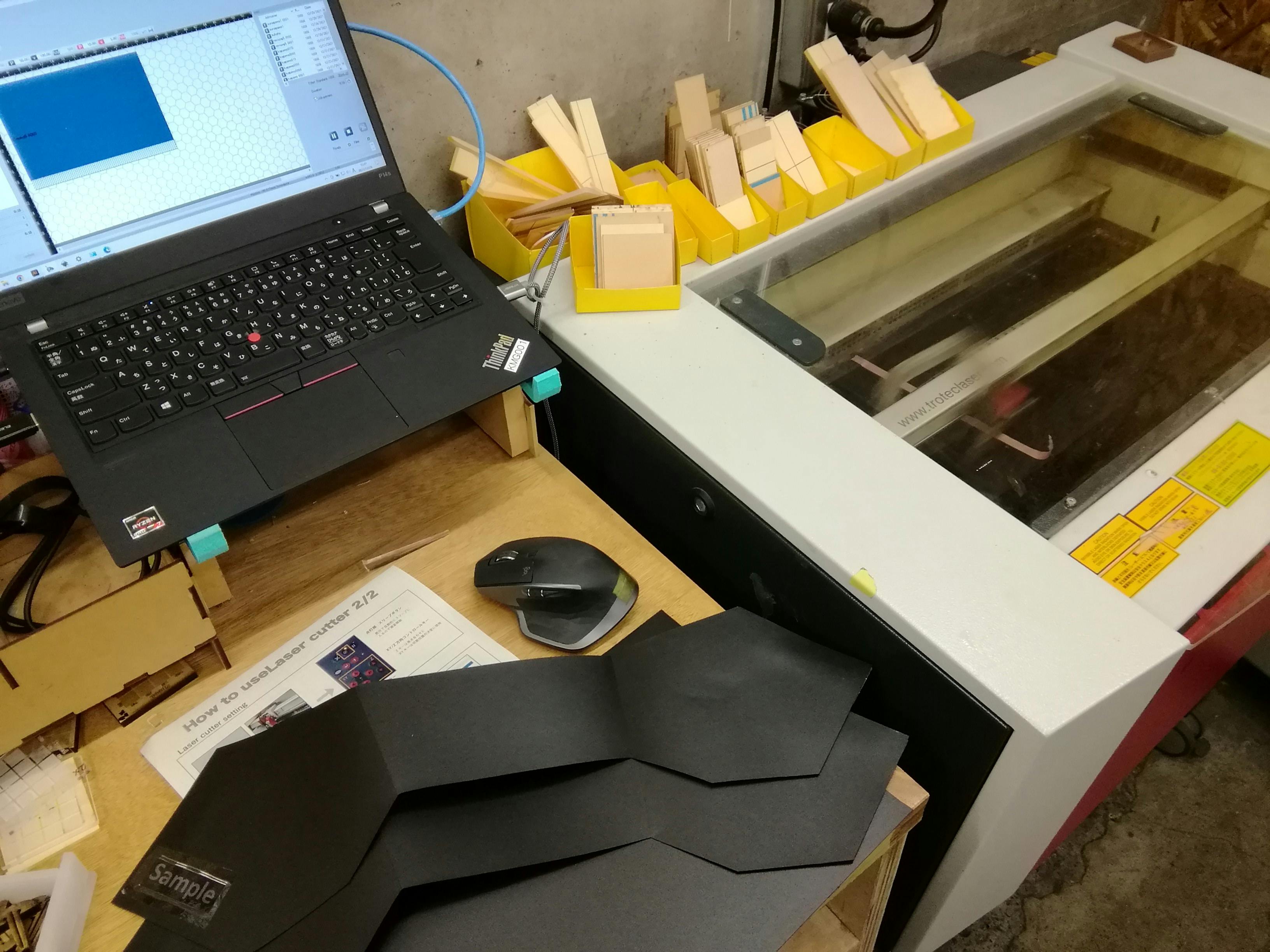 パーツの一部は、京都のファブ施設のレーザーカッターで製作しています。