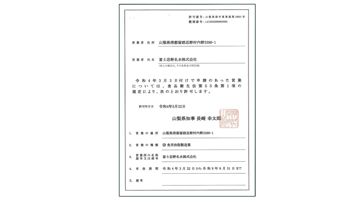 これらの厳選した基材と選び抜いたフレーバーを元に、山梨県にある食品加工工場(富士忍野名水株式会社 山梨県南都留郡忍野村内野3390-1)で一本一本丁寧に手作業で生産しています。