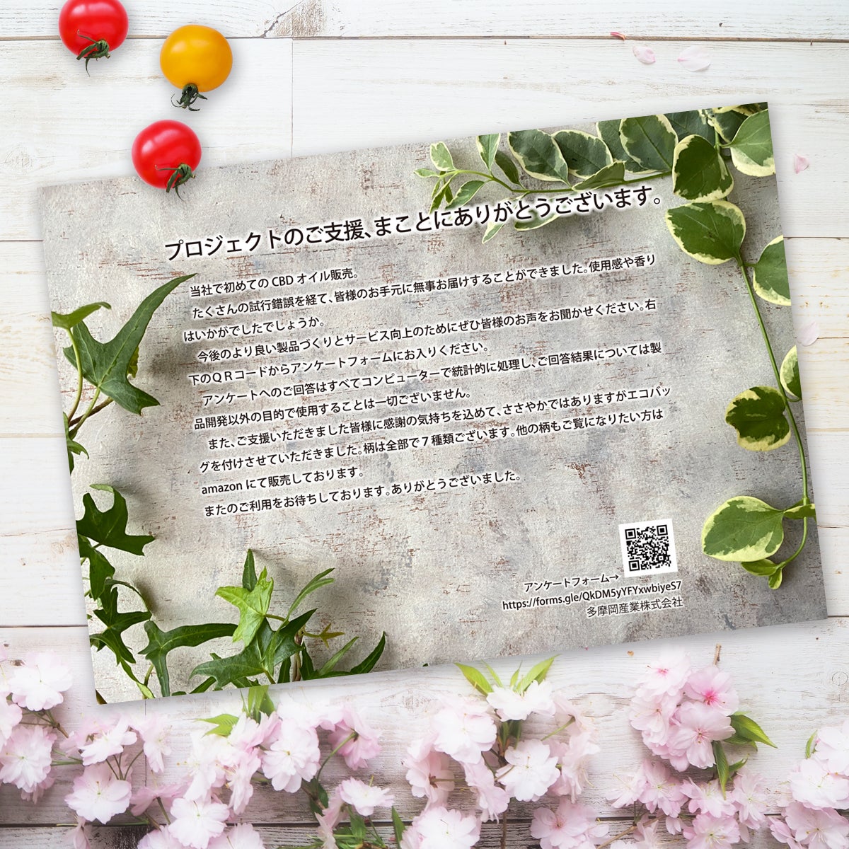 2022/03/31 14:09昨日スタートいたしました本プロジェクト。すでに3名の方にご支援いただきました。誠にありがとうございます!CBDオイルを配送する際の台紙も形になってまいりました。配送の際には、弊社より感謝の気持ちを込めましてサプライズもご用意させていただく予定です。ご支援頂きました皆様には一つ一つ愛情を込めてお手元に届きますよう尽くして参りますので、今しばらくお待ち下さいますようお願い致します。まだまだ一人でも多くの方に「REVINA」に興味を持っていただき、CBDのすばらしさを実感していただきたいと思っております。どうか皆様最後までご支援のほどよろしくお願い致します! もっと見る